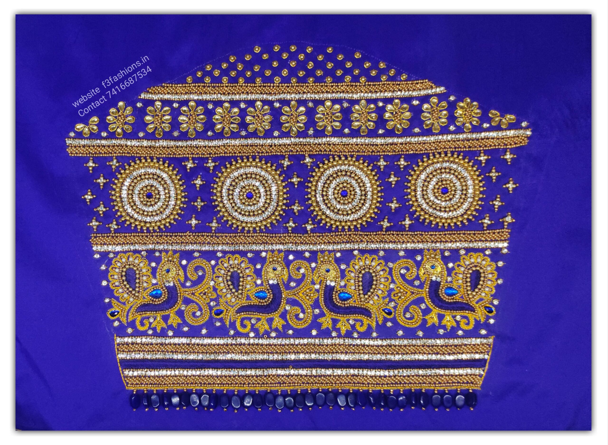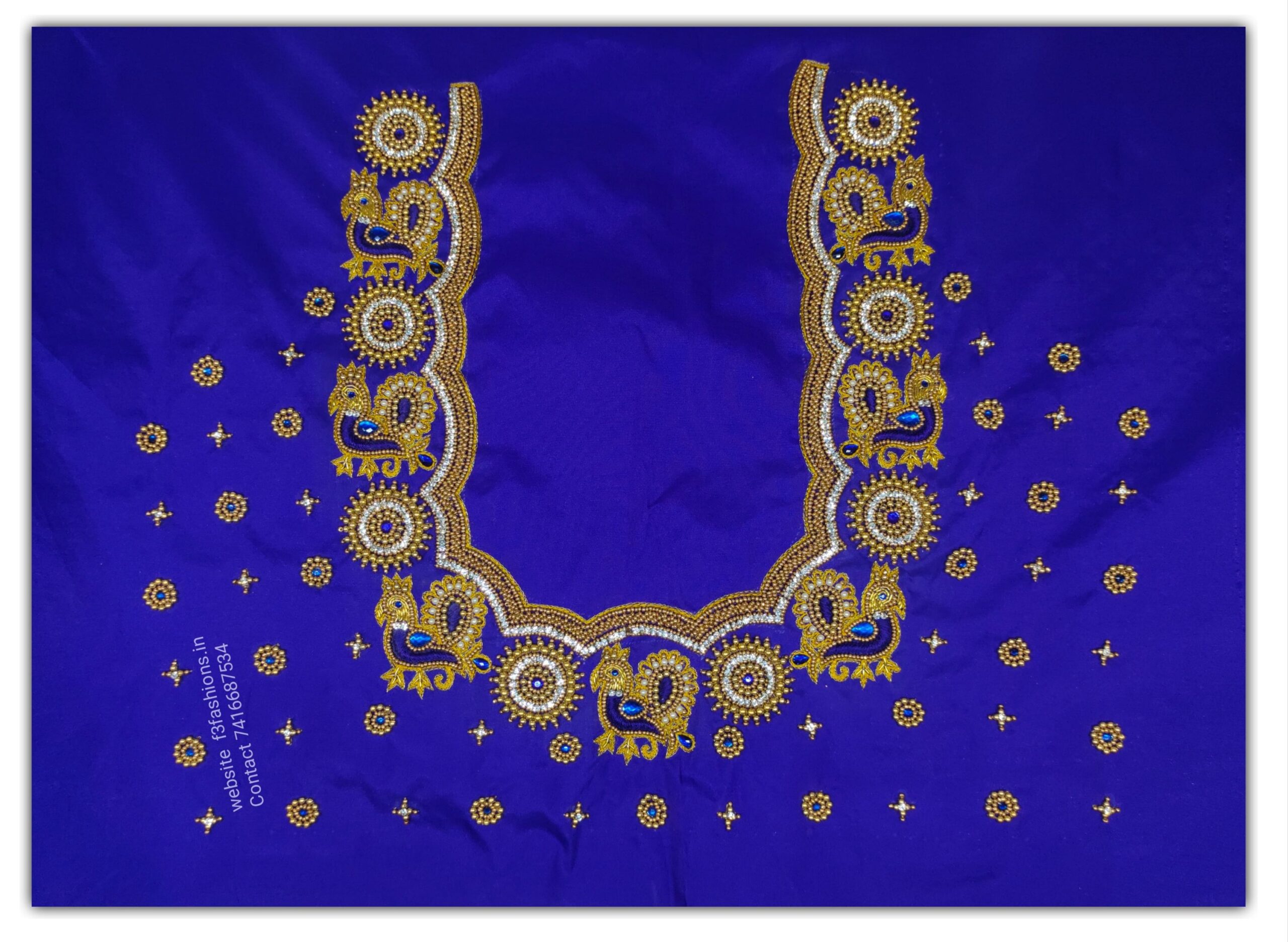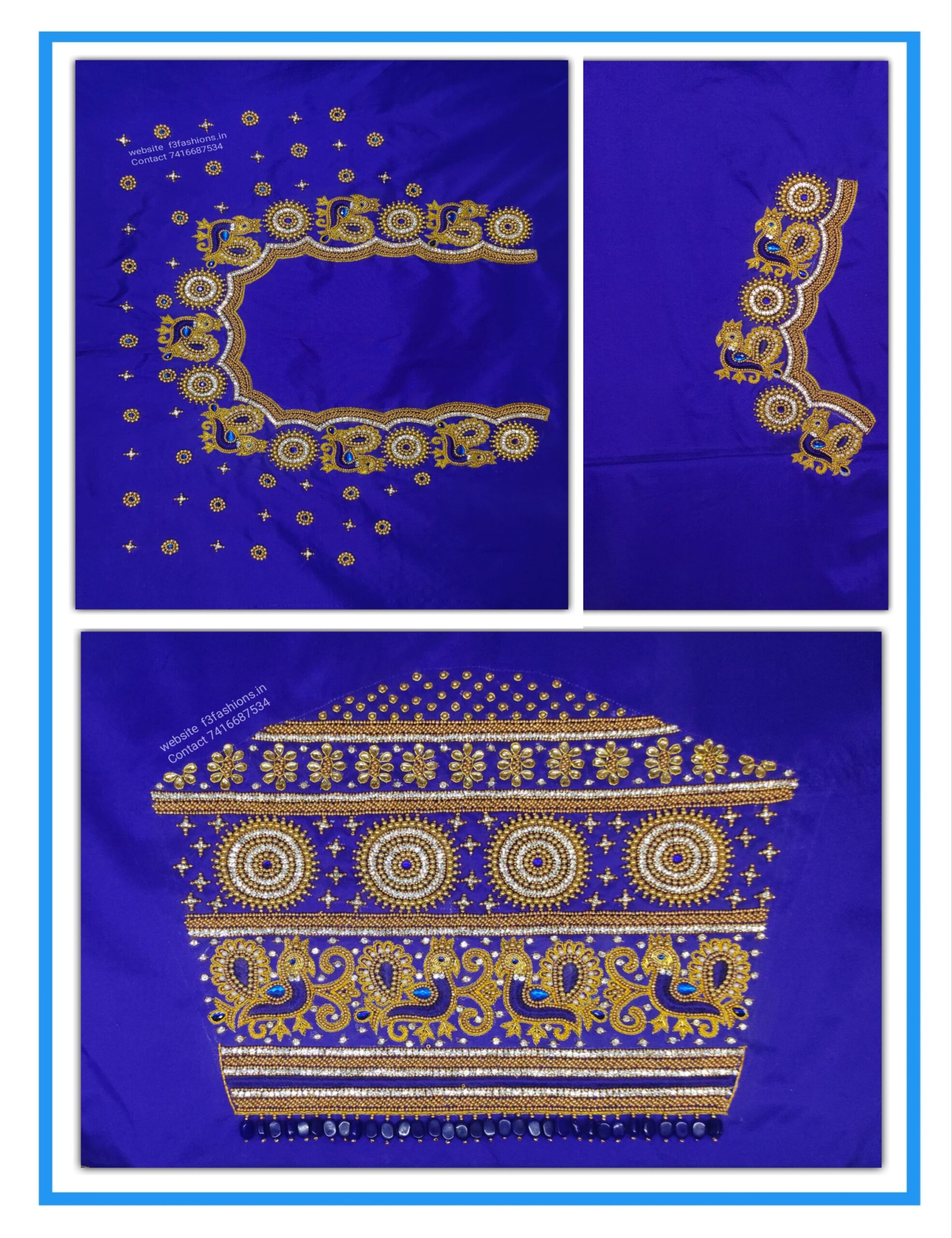 Blue Ring Peacock Cutwork Design Maggam work Blouse 1015