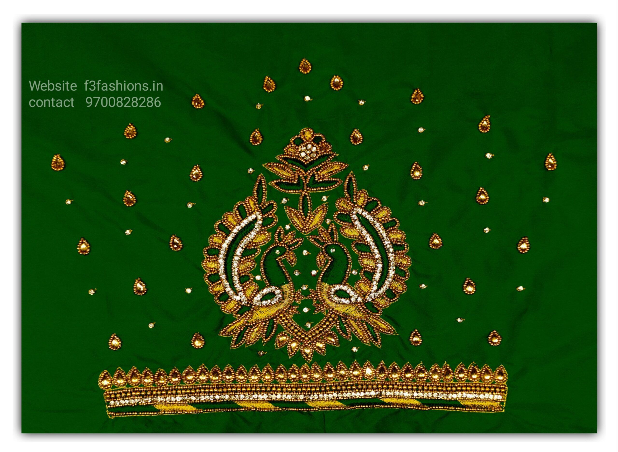 HomeBest product Dark Green Colour Double Peacock Design Maggam Work Blouse