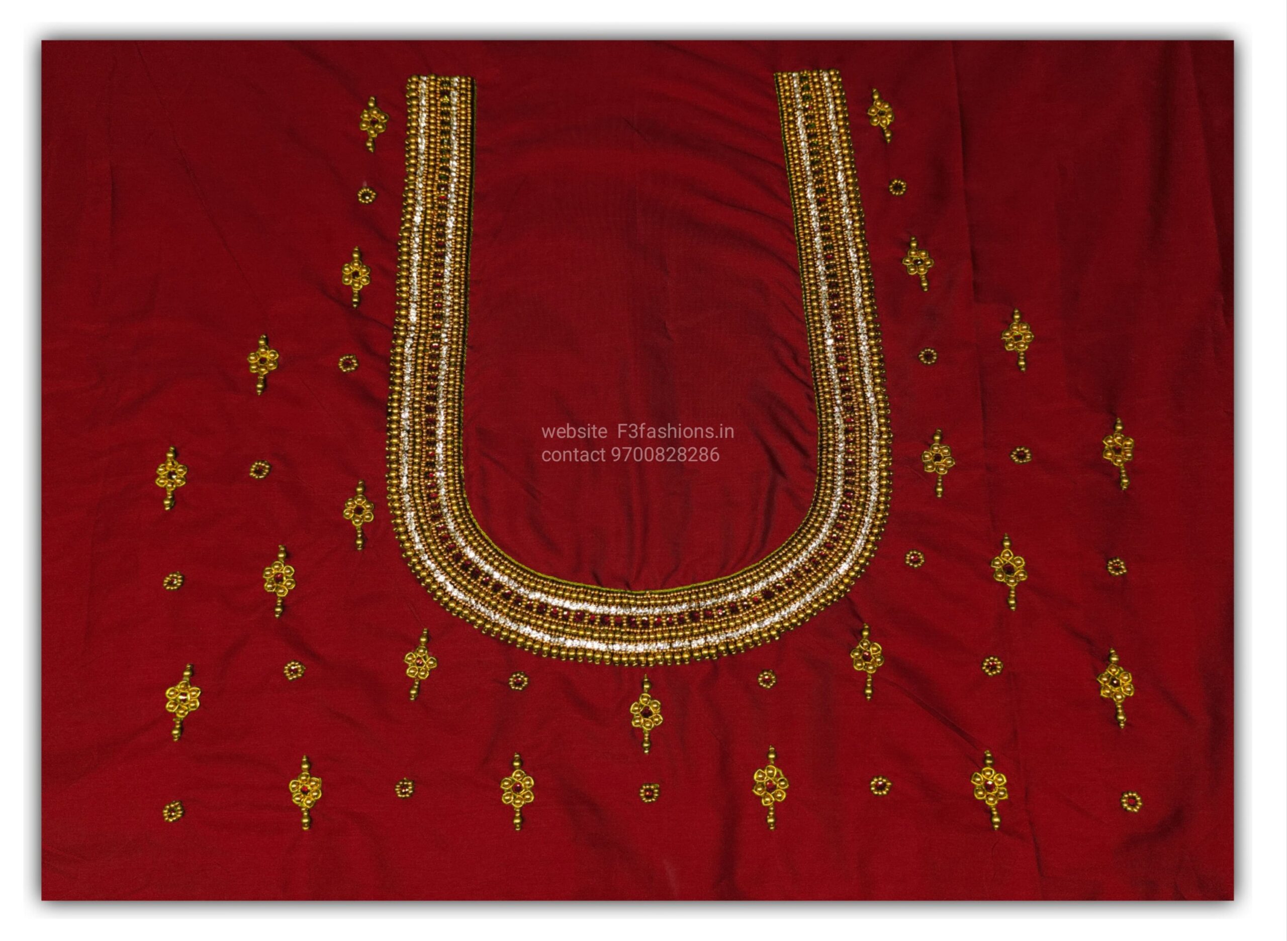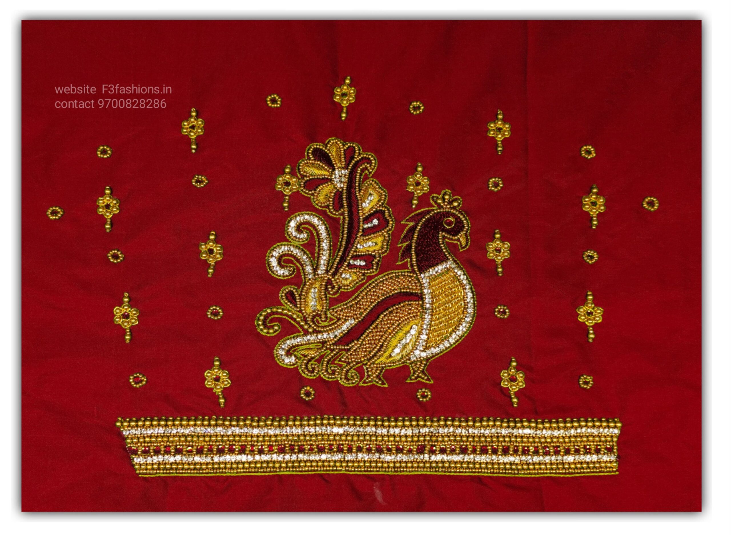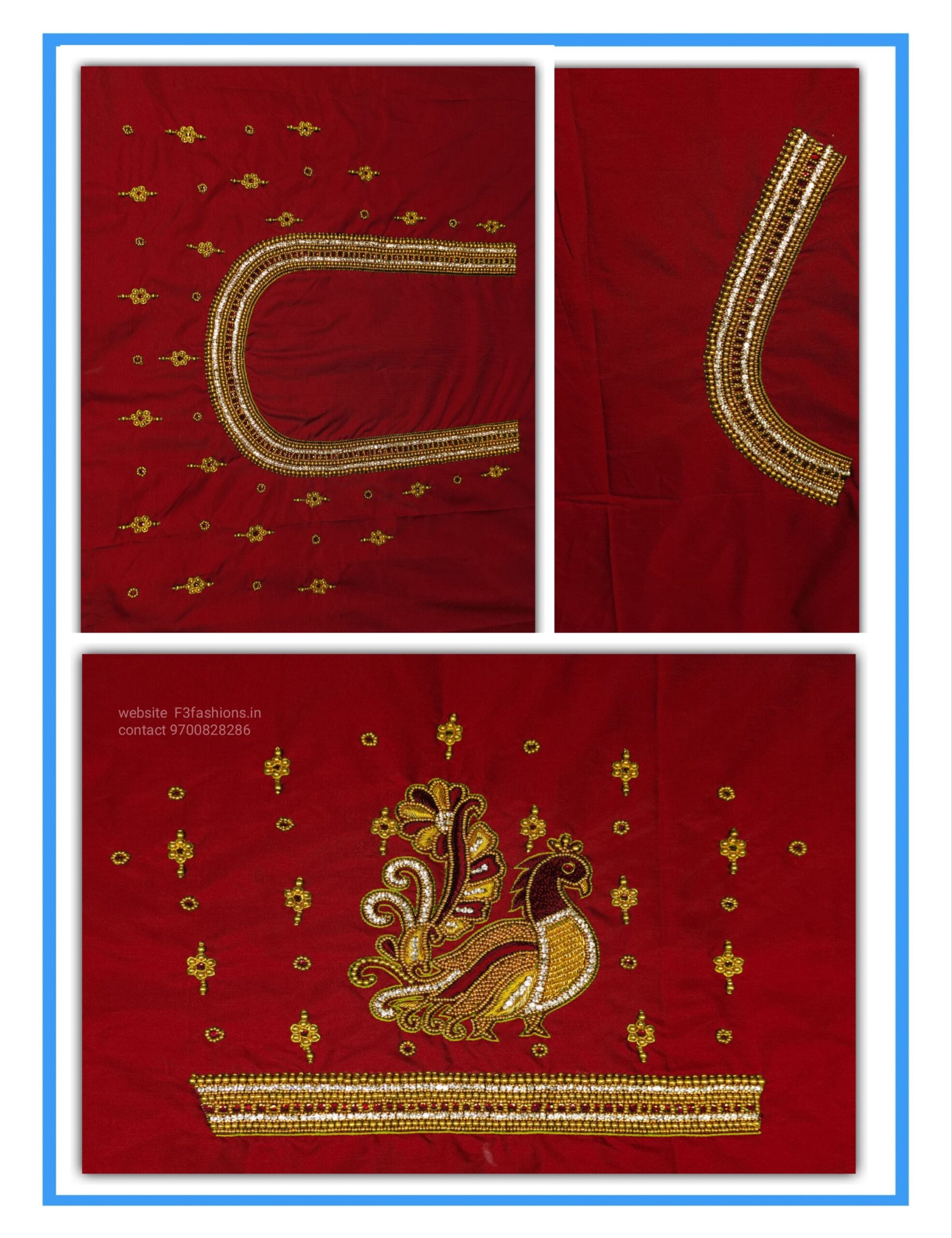 Dark Red Colour big Peacock Design Maggam work Blouse