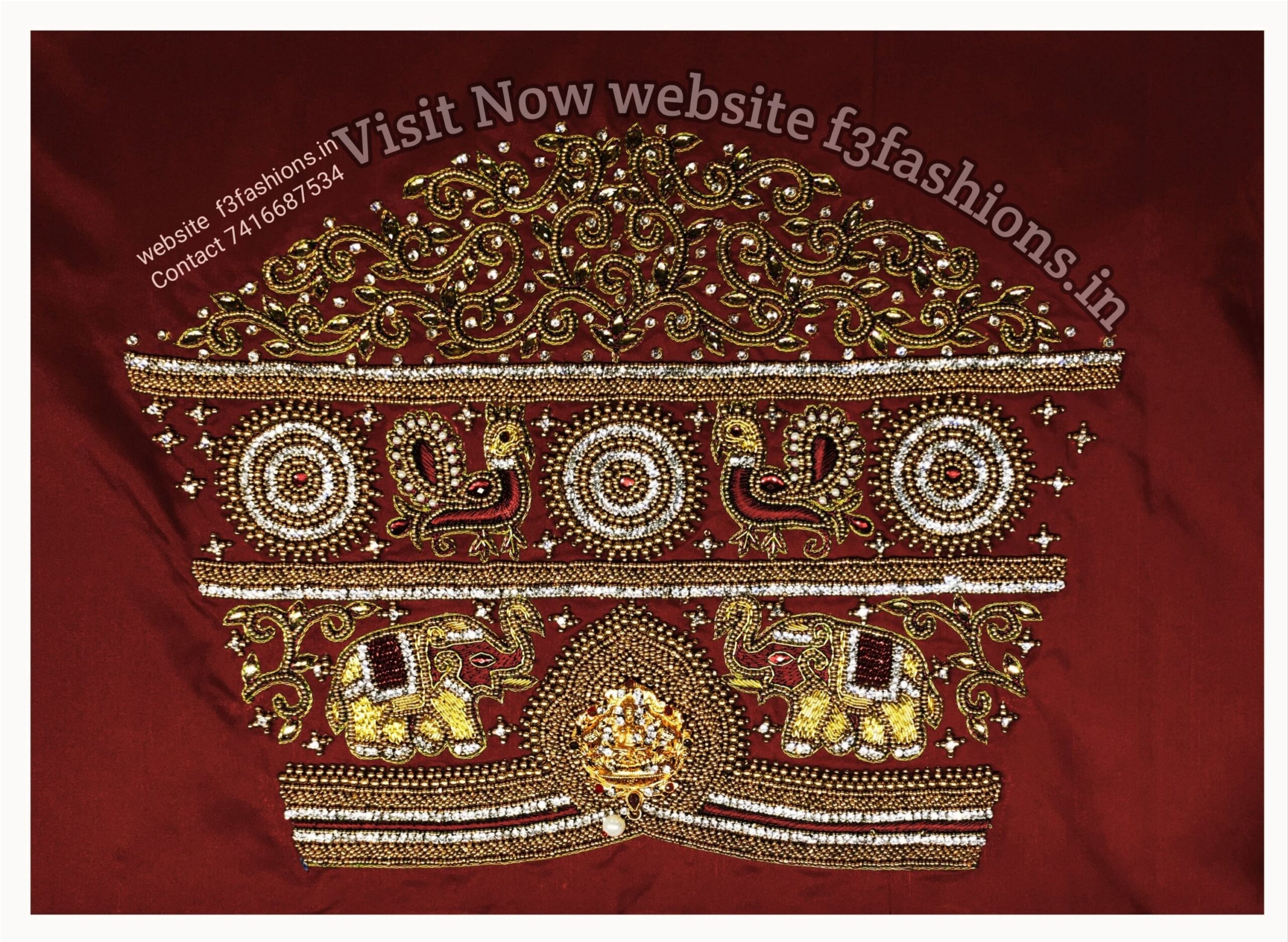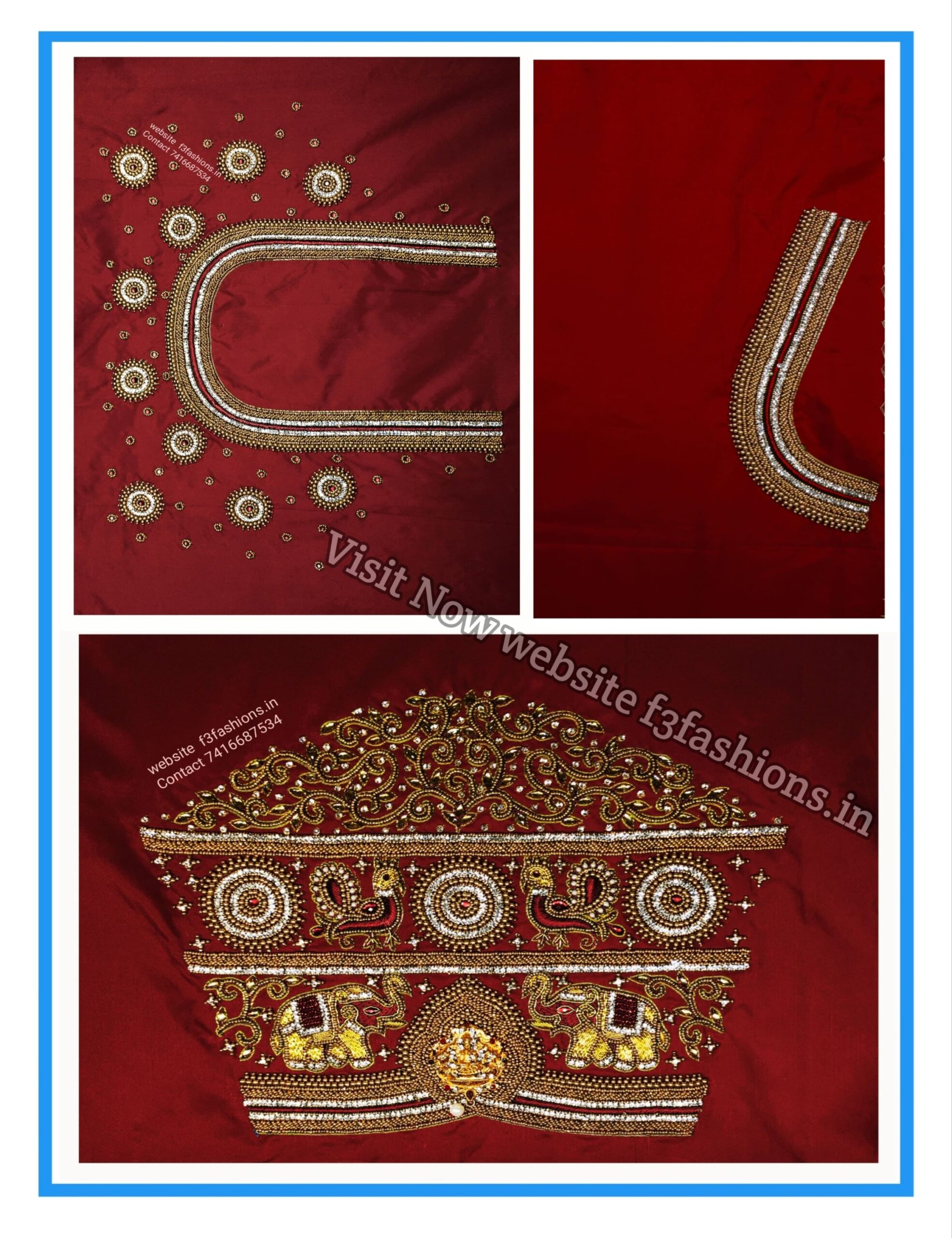 Dark Red Colour Laxmi Elephant Design Maggam Work Blouse