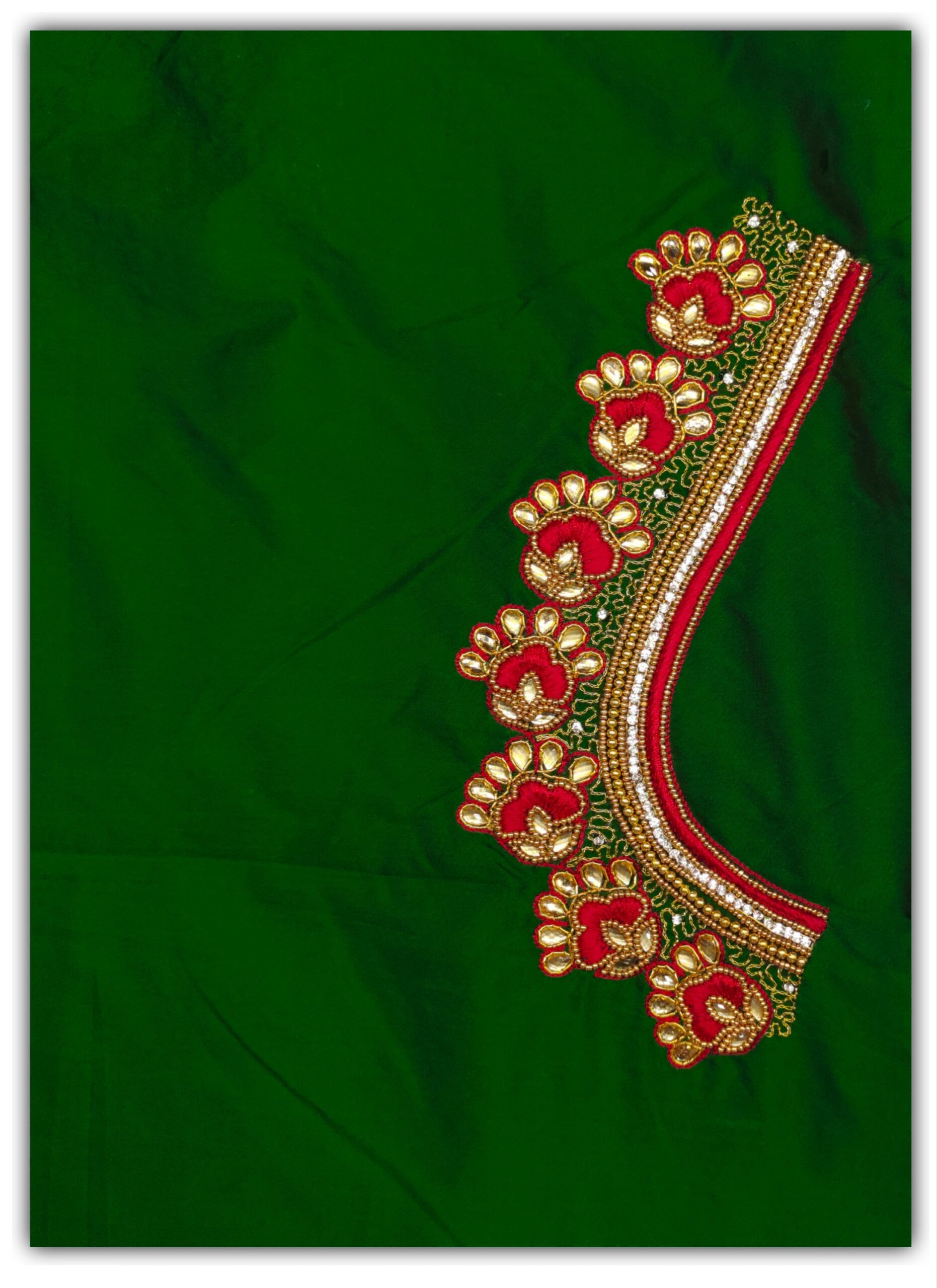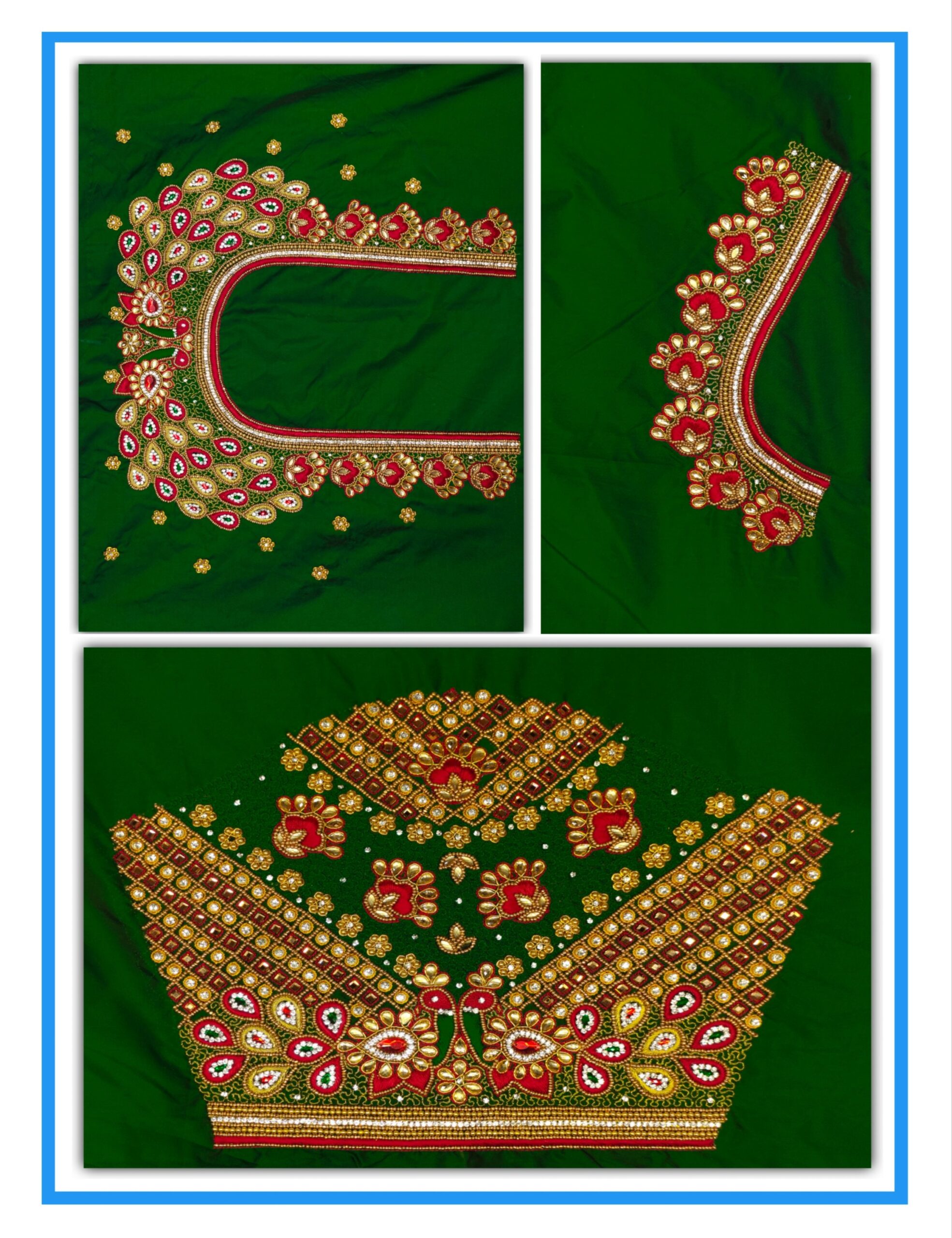 Be the first to review “Dark Green Peacock design Maggam work blouse” Cancel reply