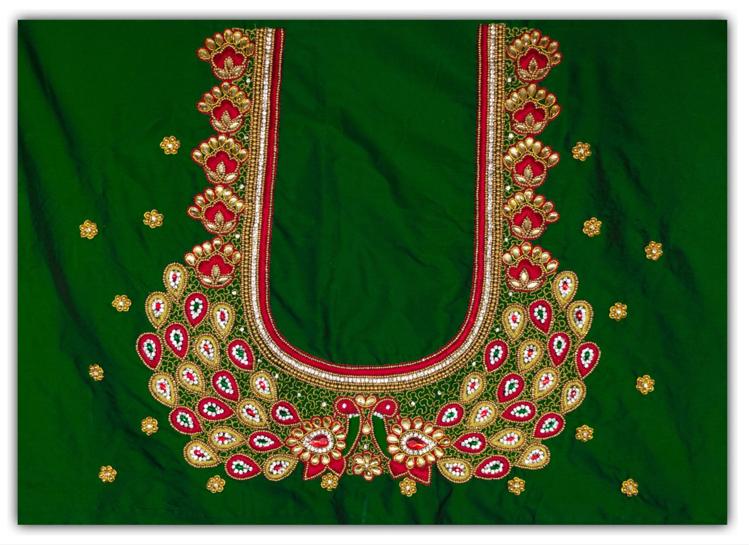 HomeGreen Dark Green Peacock design Maggam work blouse