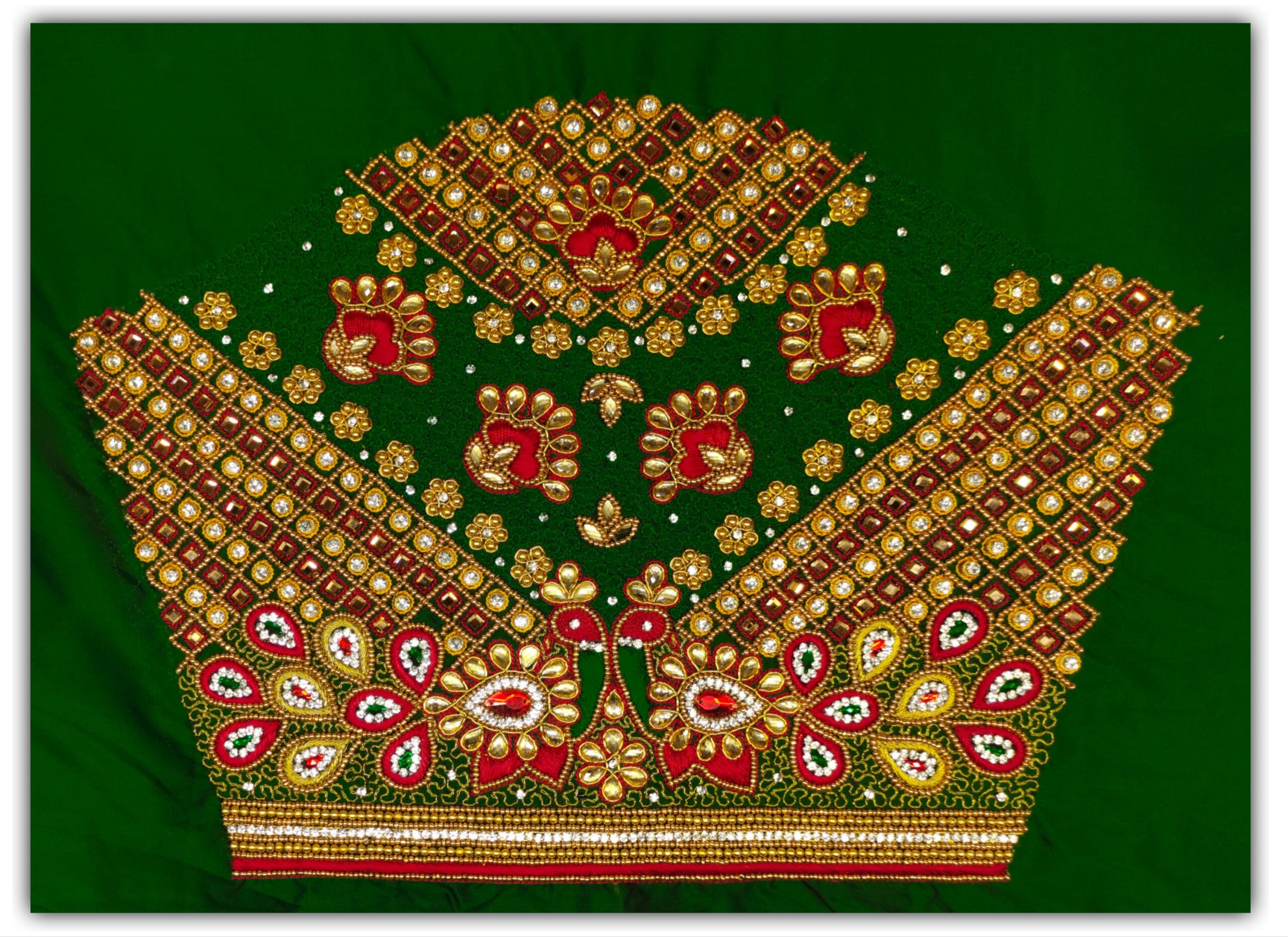 Dark Green Peacock design Maggam work blouse