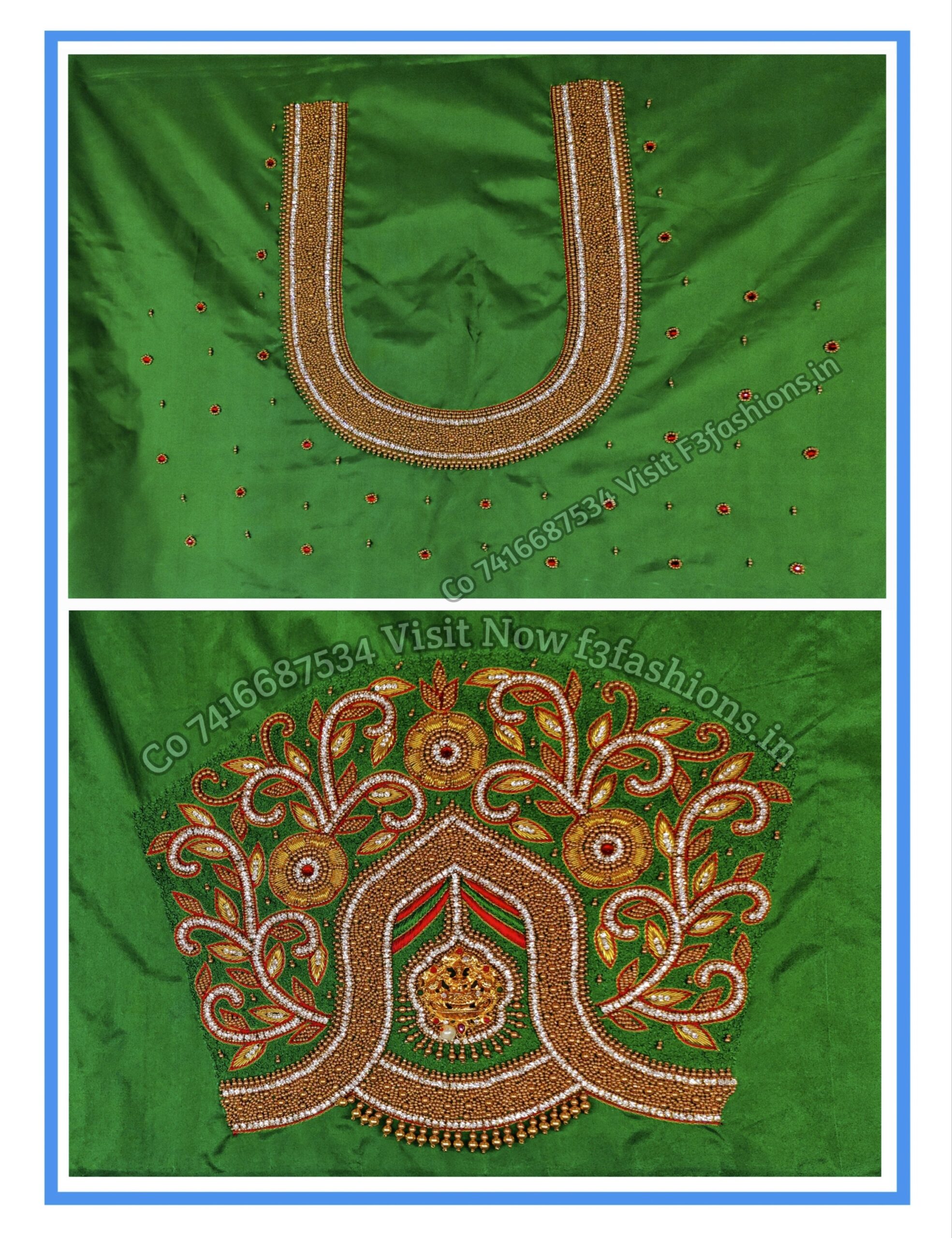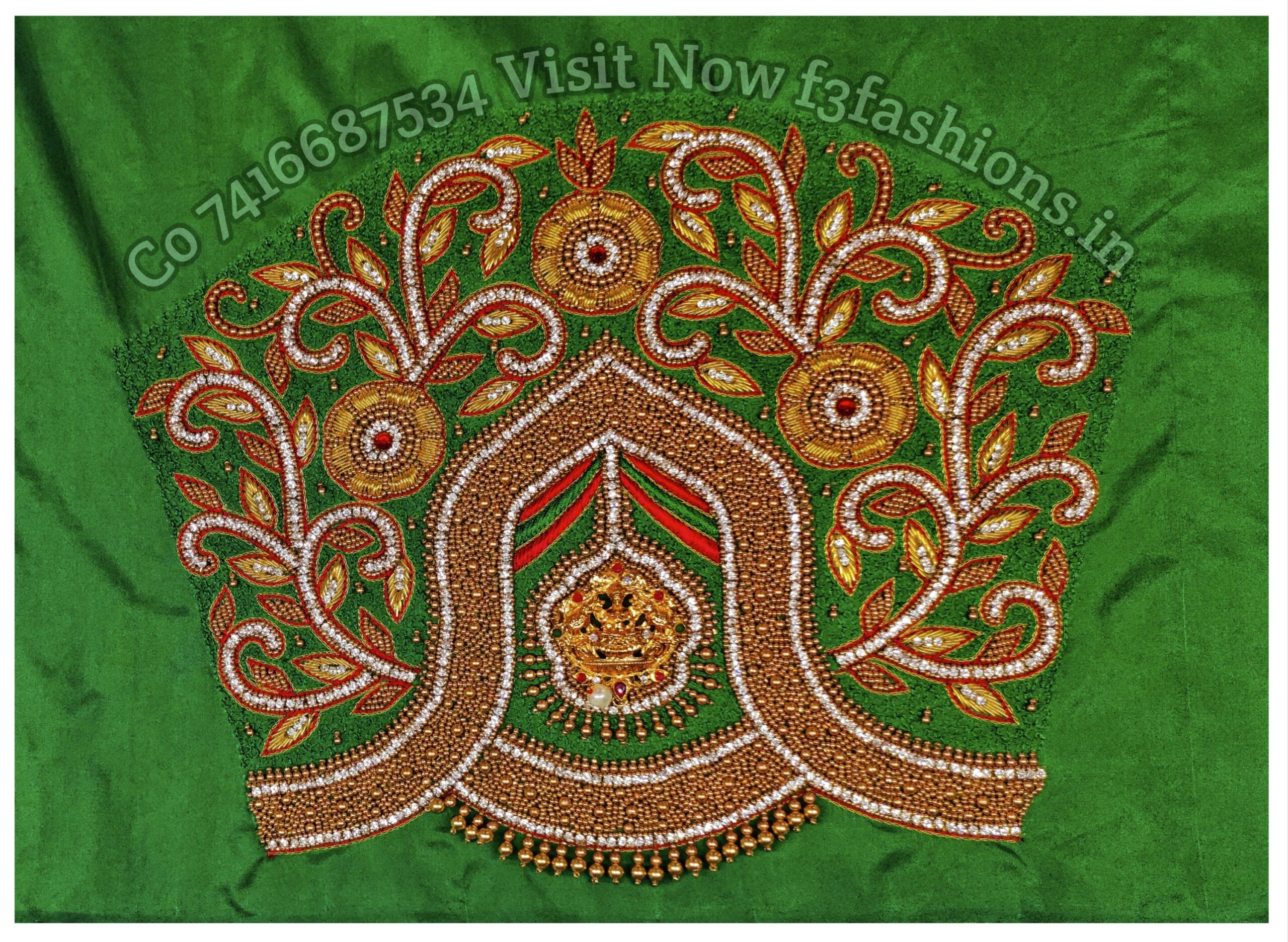 Light Green Cloth Leaf Flower Design maggam work Blouse
