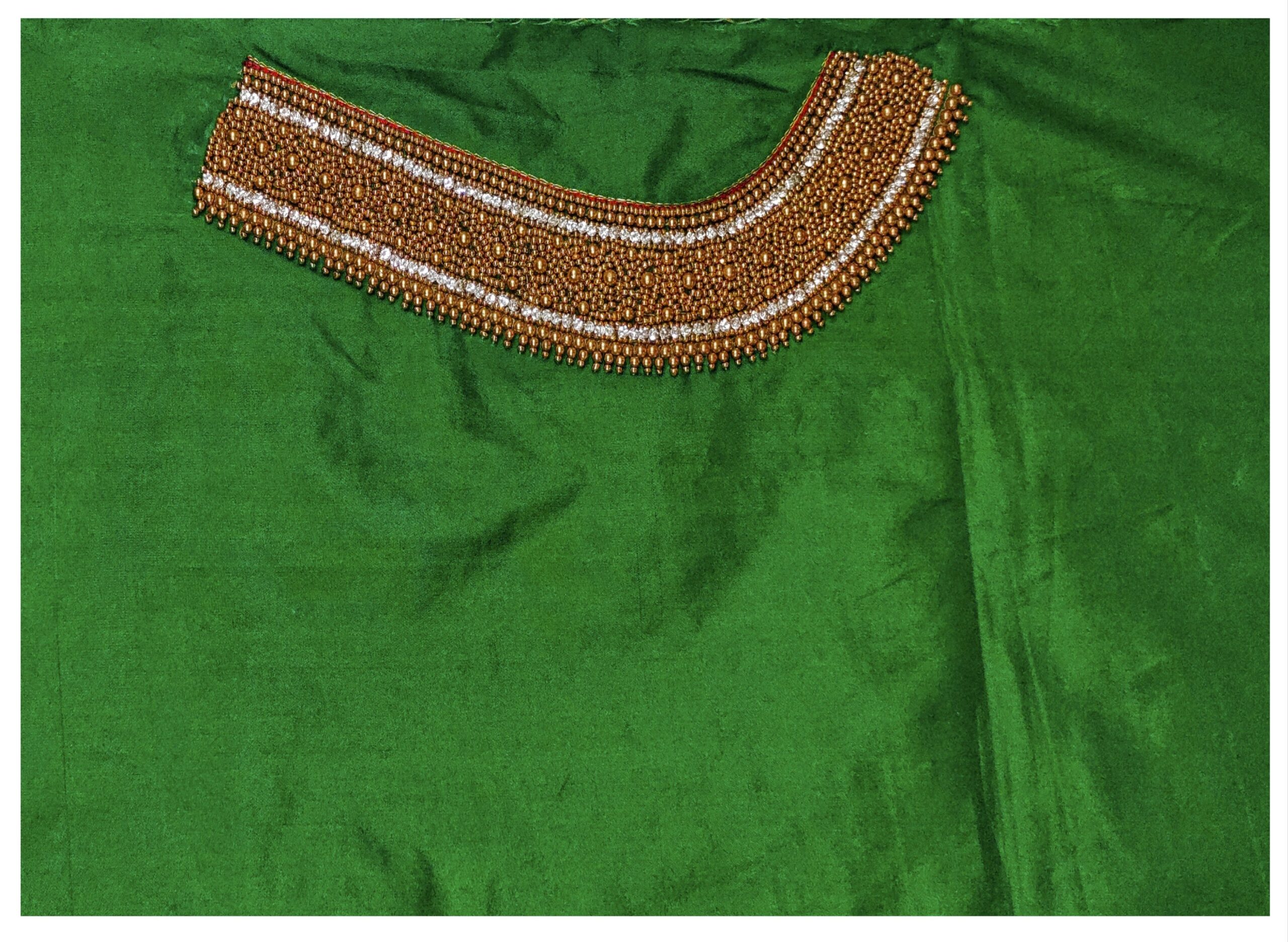 Light Green Cloth Red Combination unstitched blouse We bring to you this blouse which is designed for women and is made from half pattu, cotton silk fabric. It is available in a set of attractive colors. The design on the blouse is a type of intricate design stitch known as maggam work. It is available in an unstitched form and can be stitched according to your preference and style