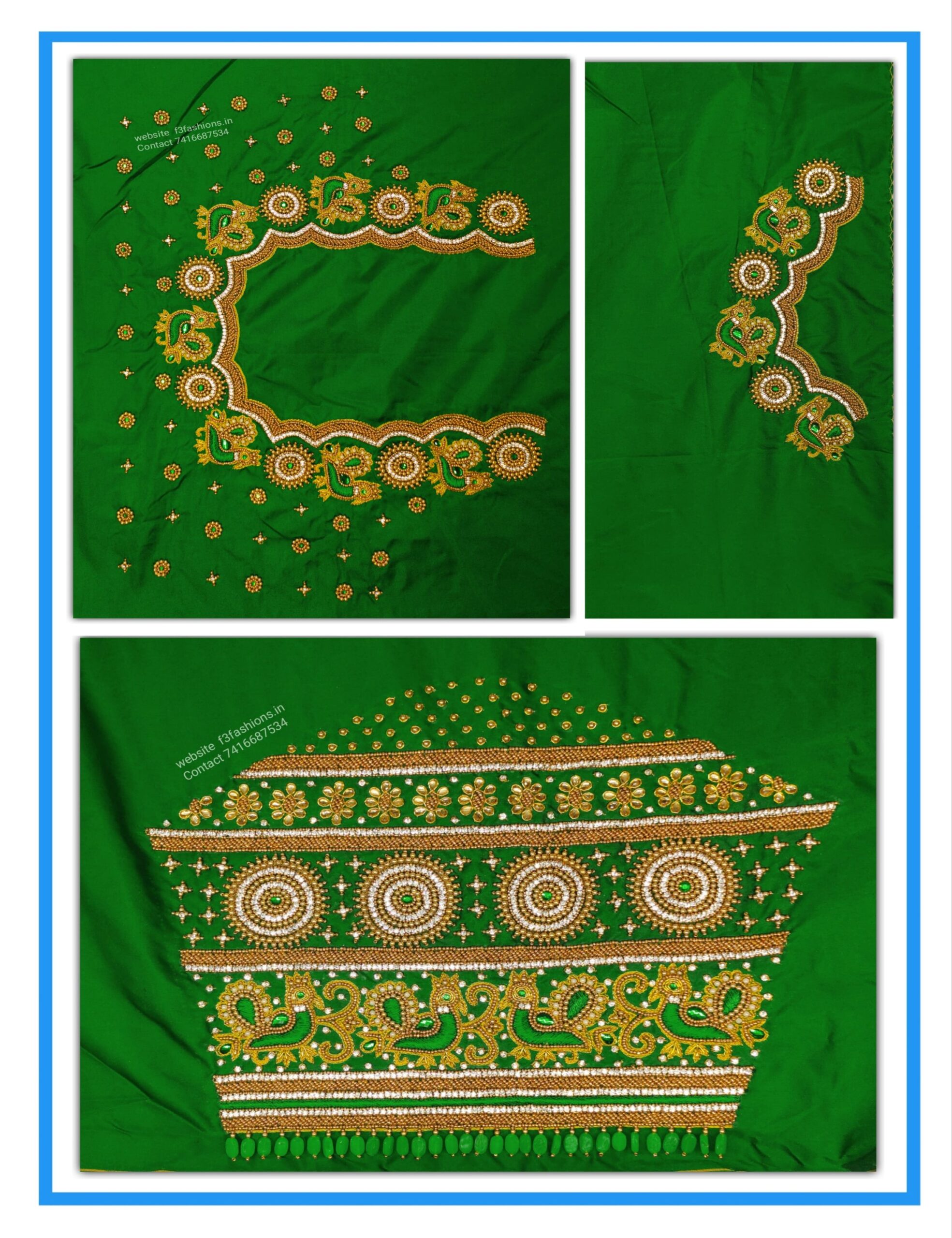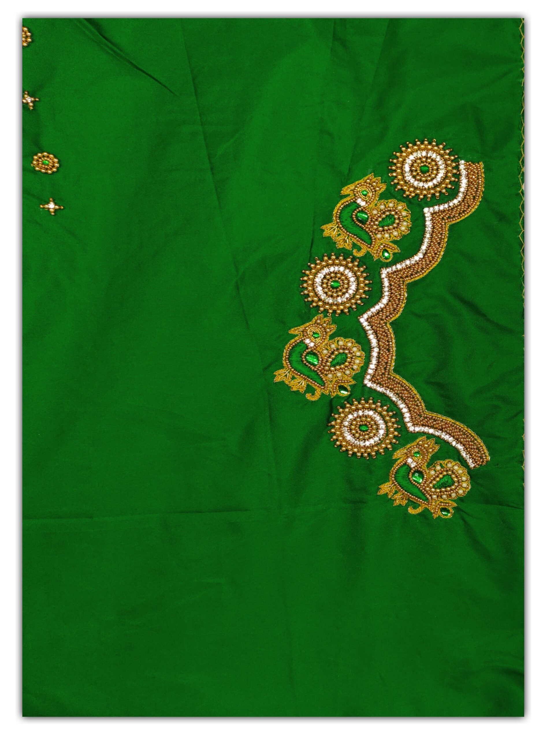 Green blouse peacock design Elbow hand maggam work Unstitched Blouse