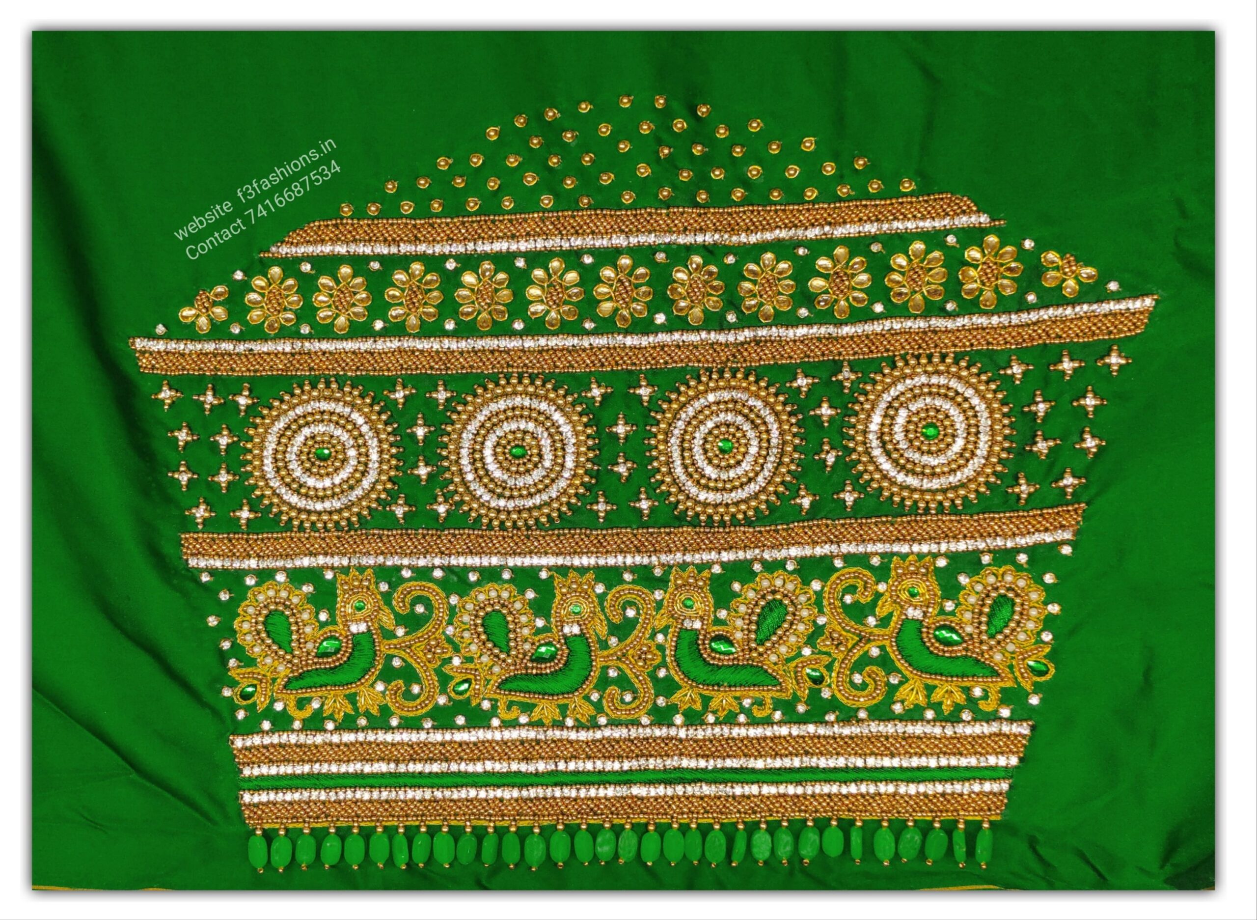 Dark Green Ring Peacock Cutwork Design Maggam work Blouse 1015