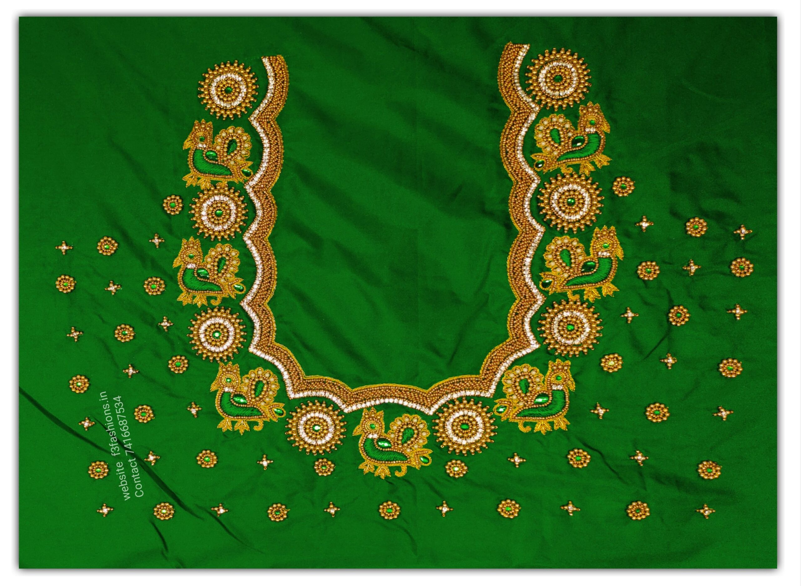 Green Colour Ring Peacock Cutwork Design Maggam work Blouse 1015