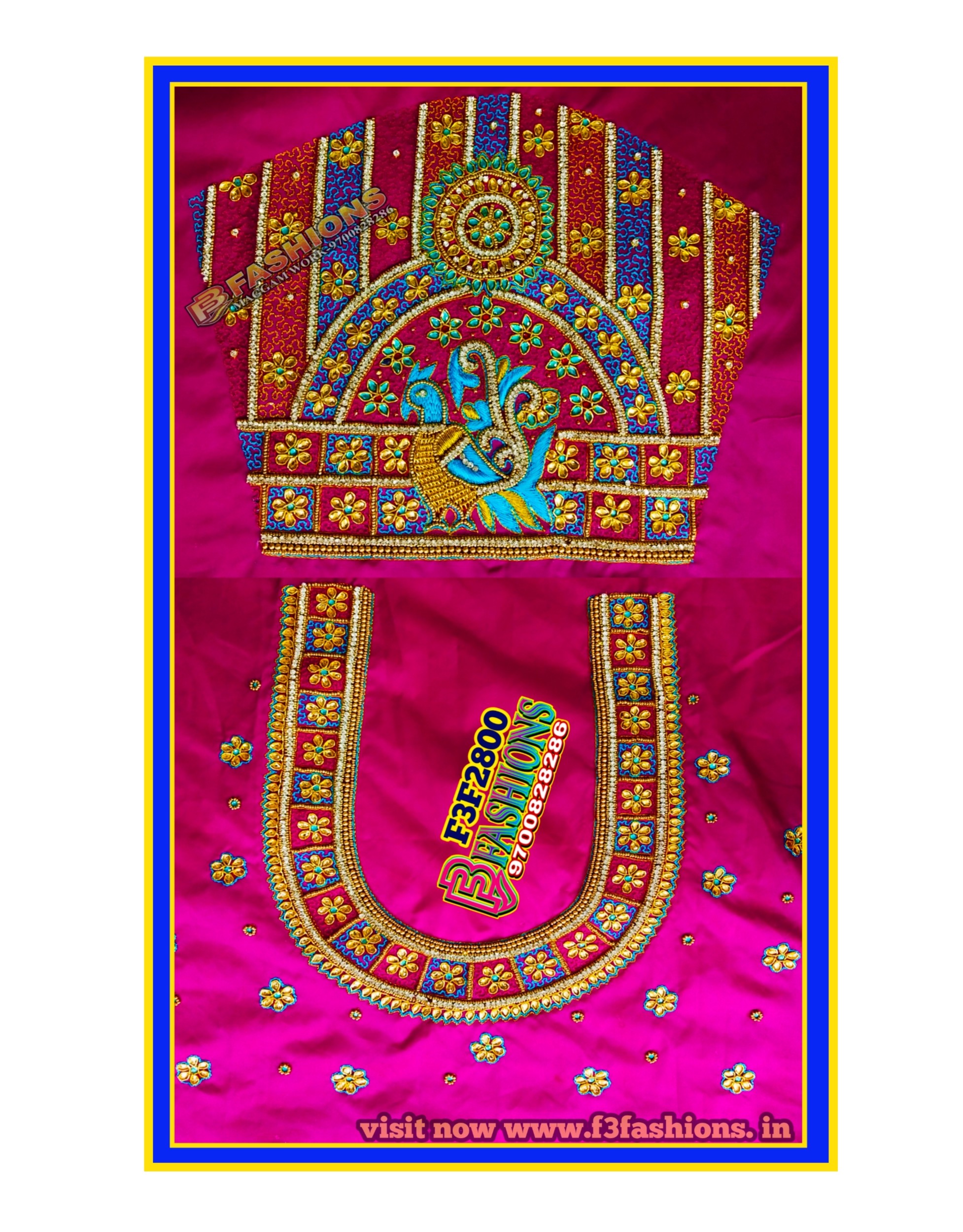 MaMagenta Blouse elbow hand peacock design Maggam Work Unstitched Blouse