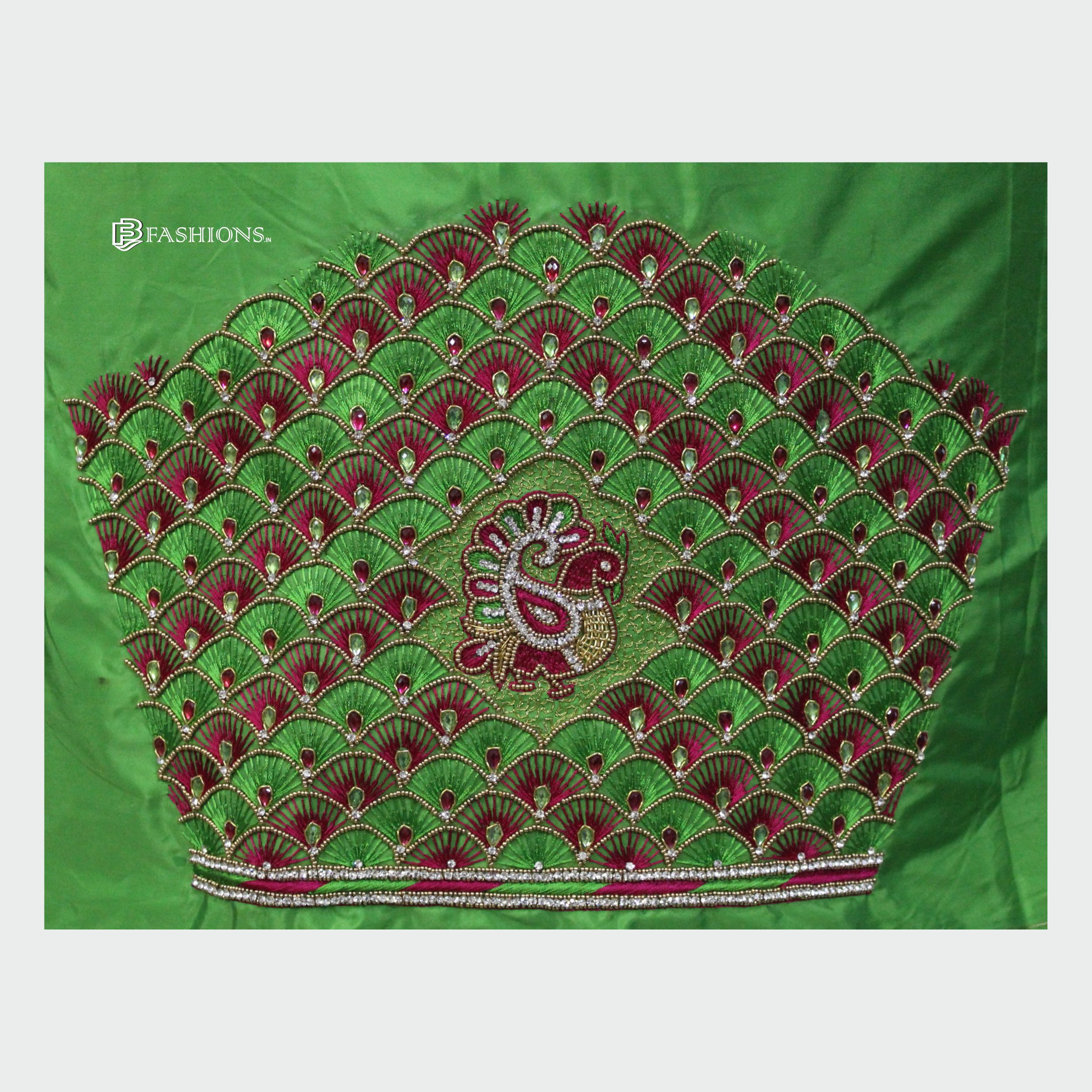 Parrot Green Colour Double Peacock Design Maggam Work Blouse