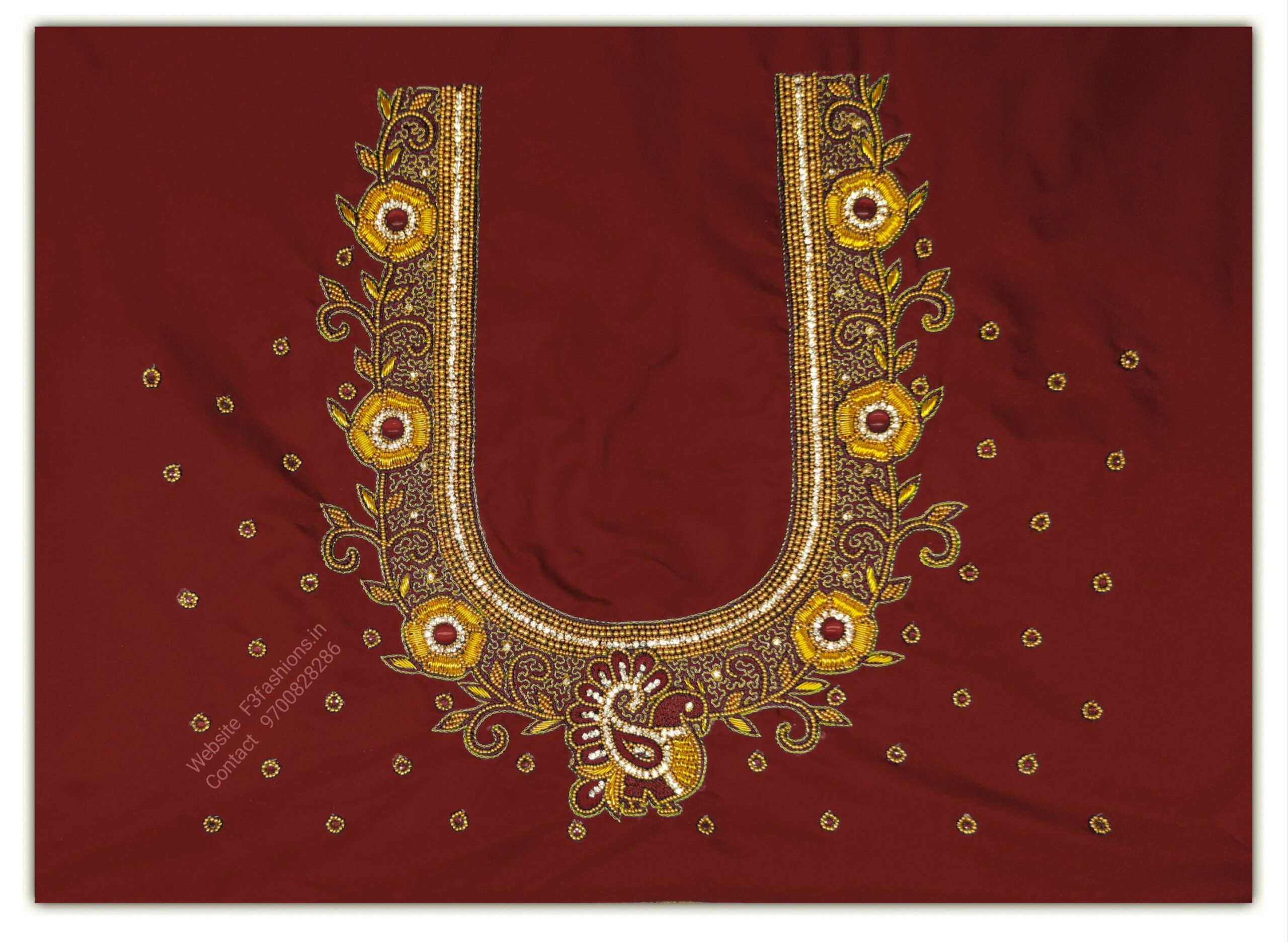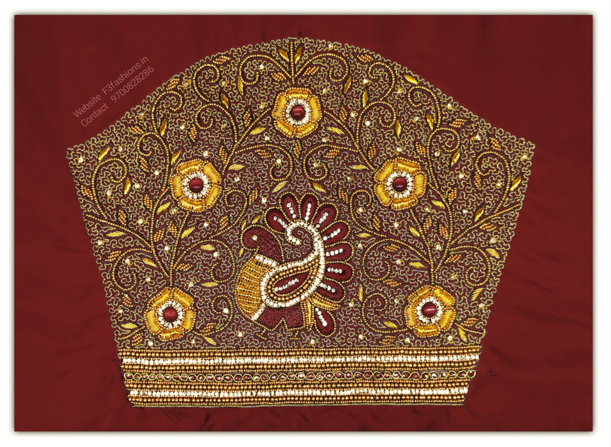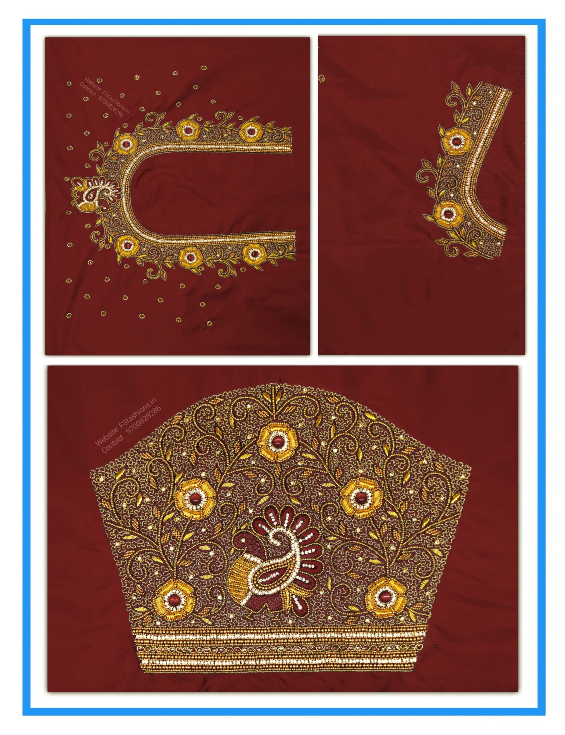 Maroon Colour Peacock Flower Water Work Design Maggam Work Blouse