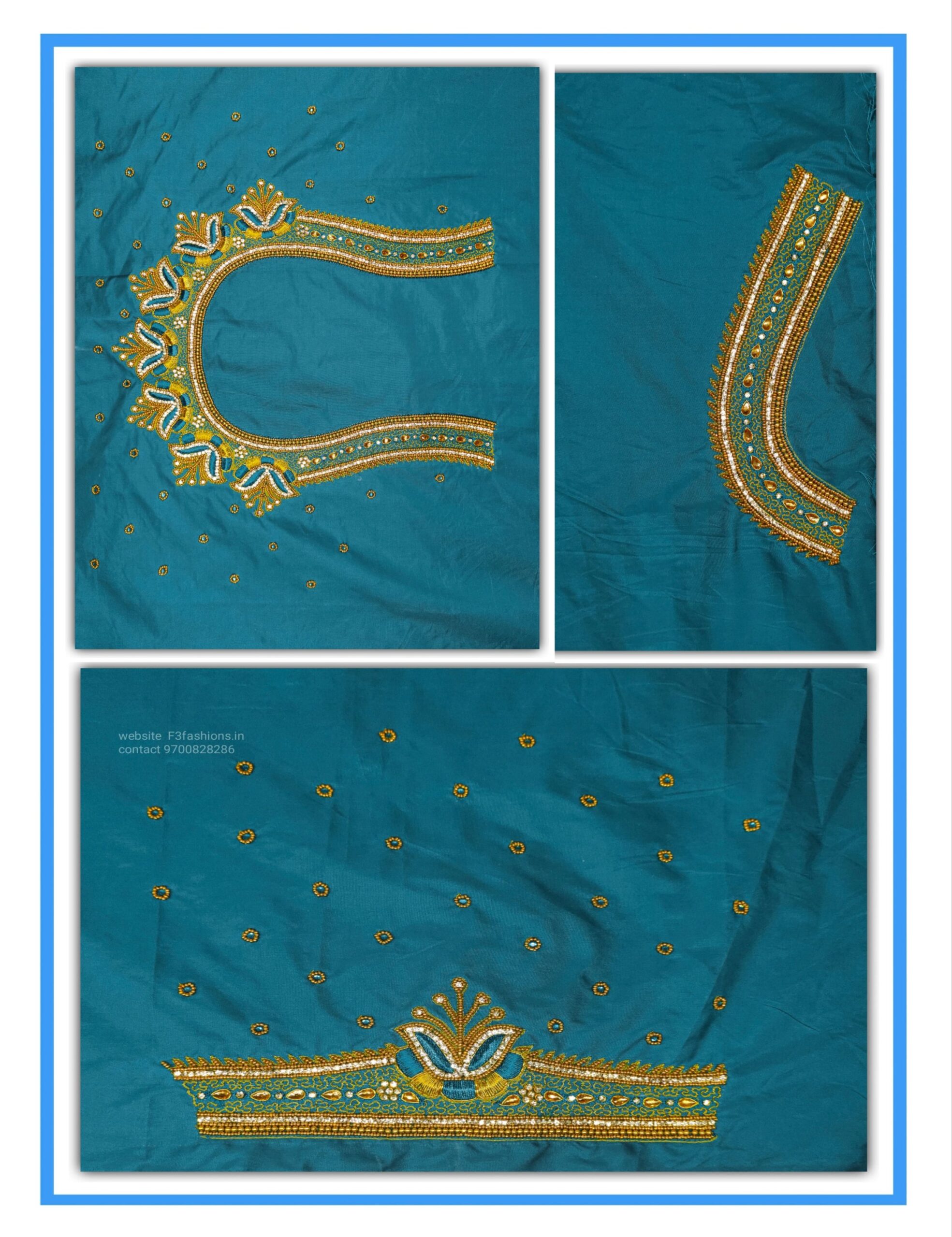 Be the first to review “Peacock Colour Small Buta Design Maggam work Blouse” Cancel reply