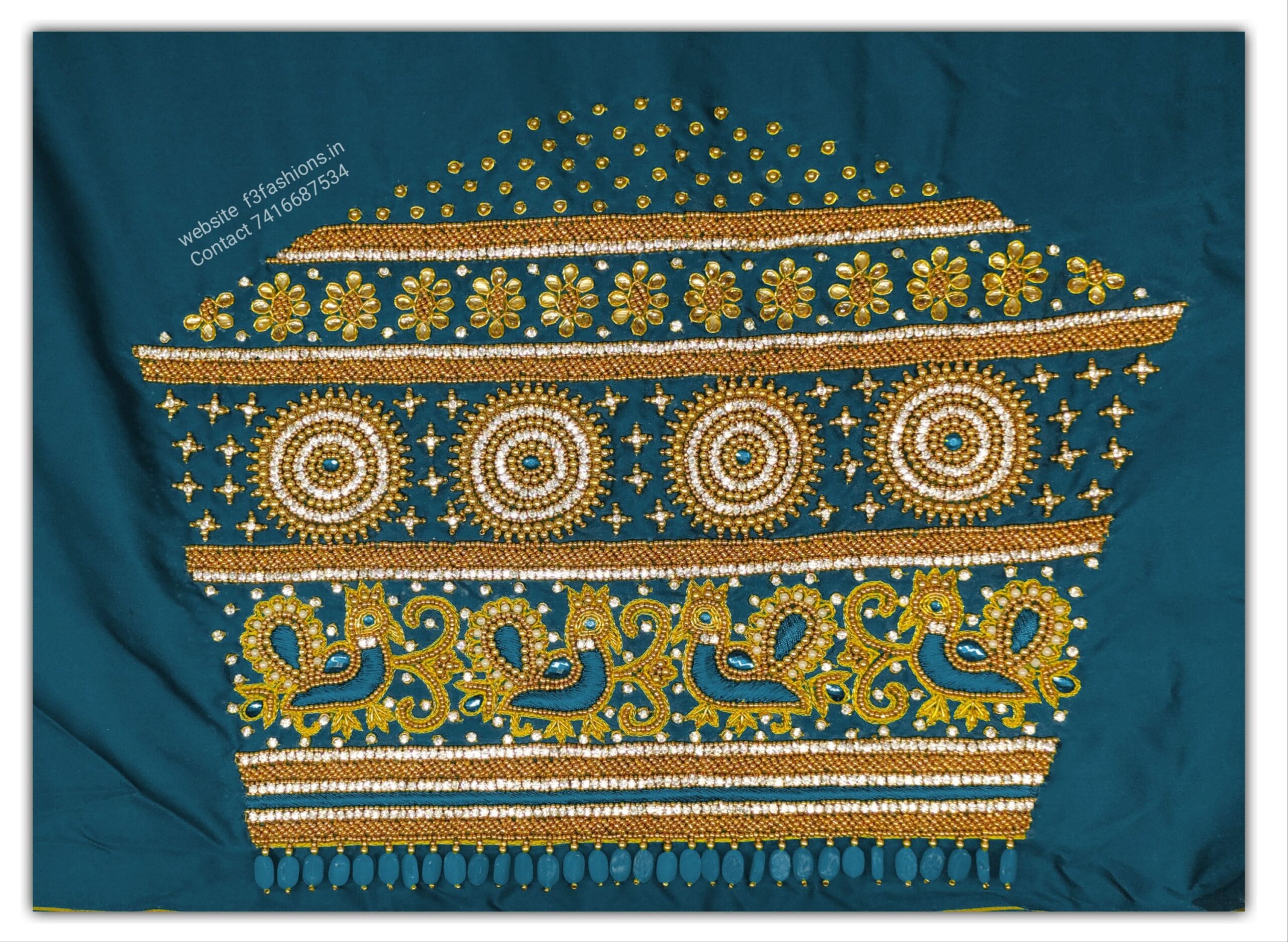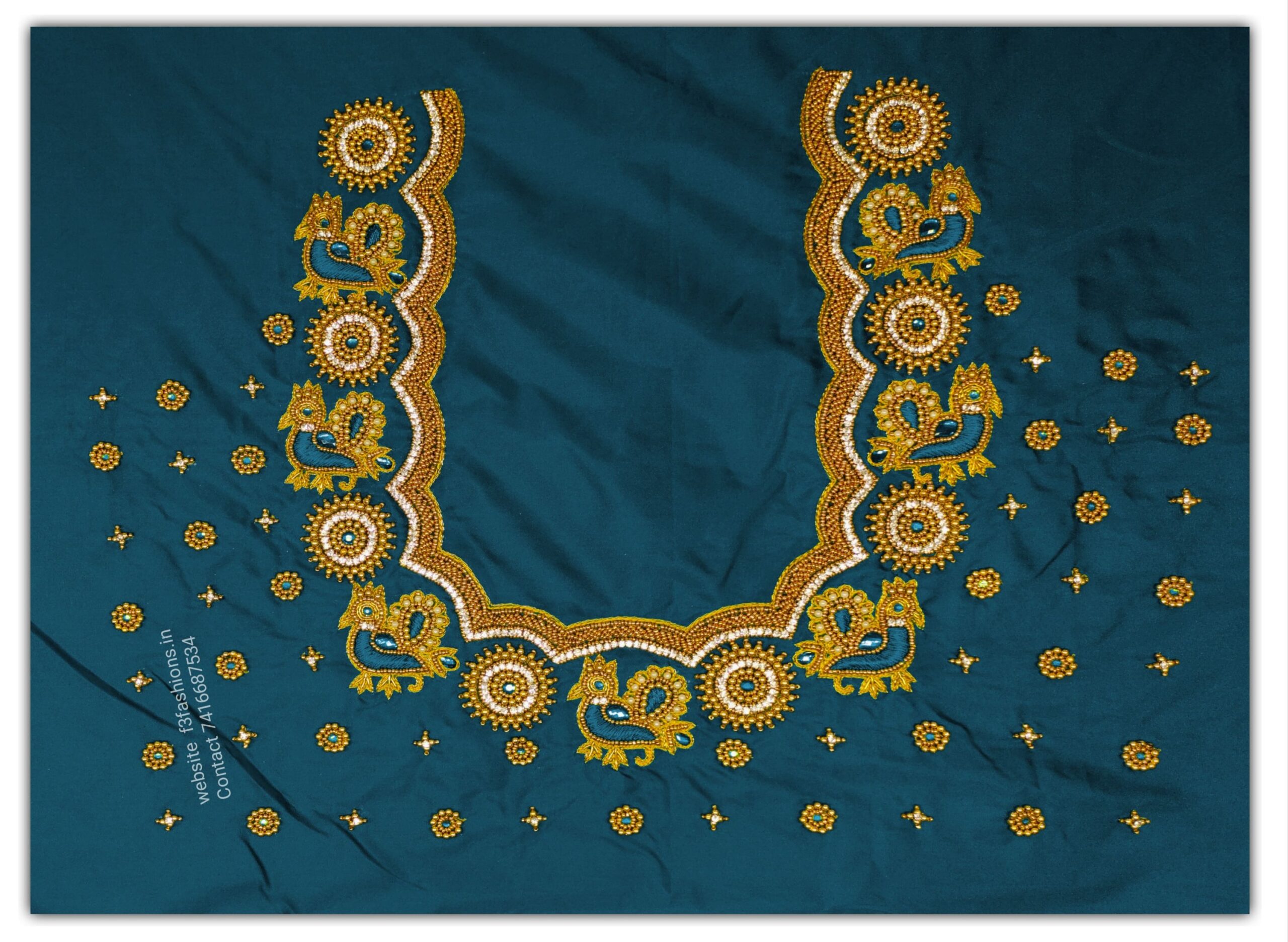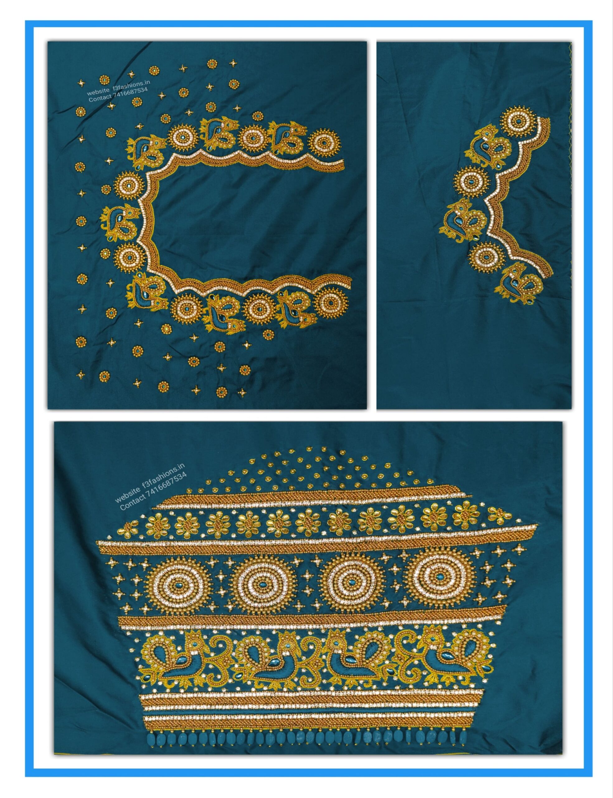 Peacock colour Ring Peacock Cutwork Design Maggam work Blouse 1015