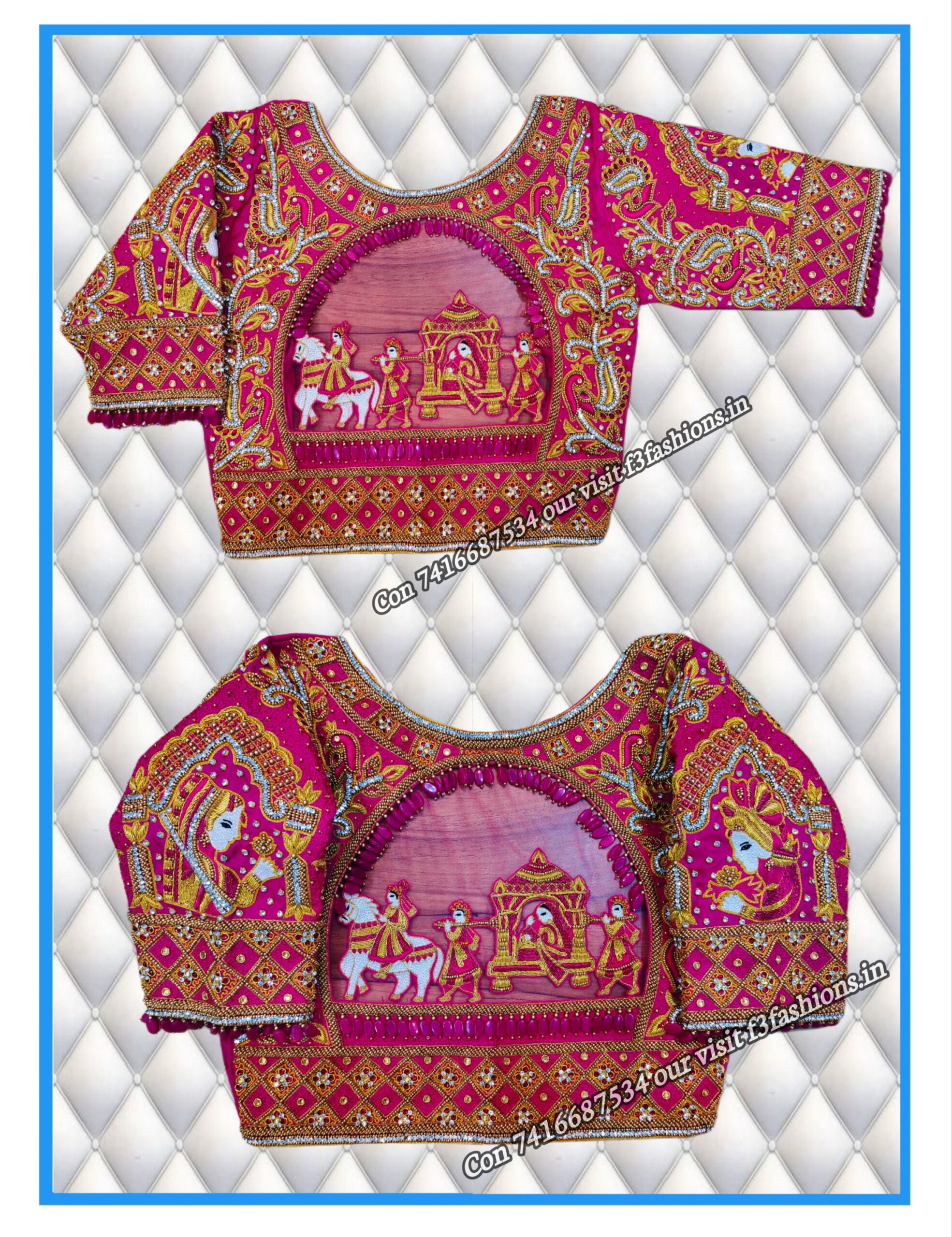 HomePinkPink Rani Pink Cloth Bridal Dolly Design maggam work Blouse