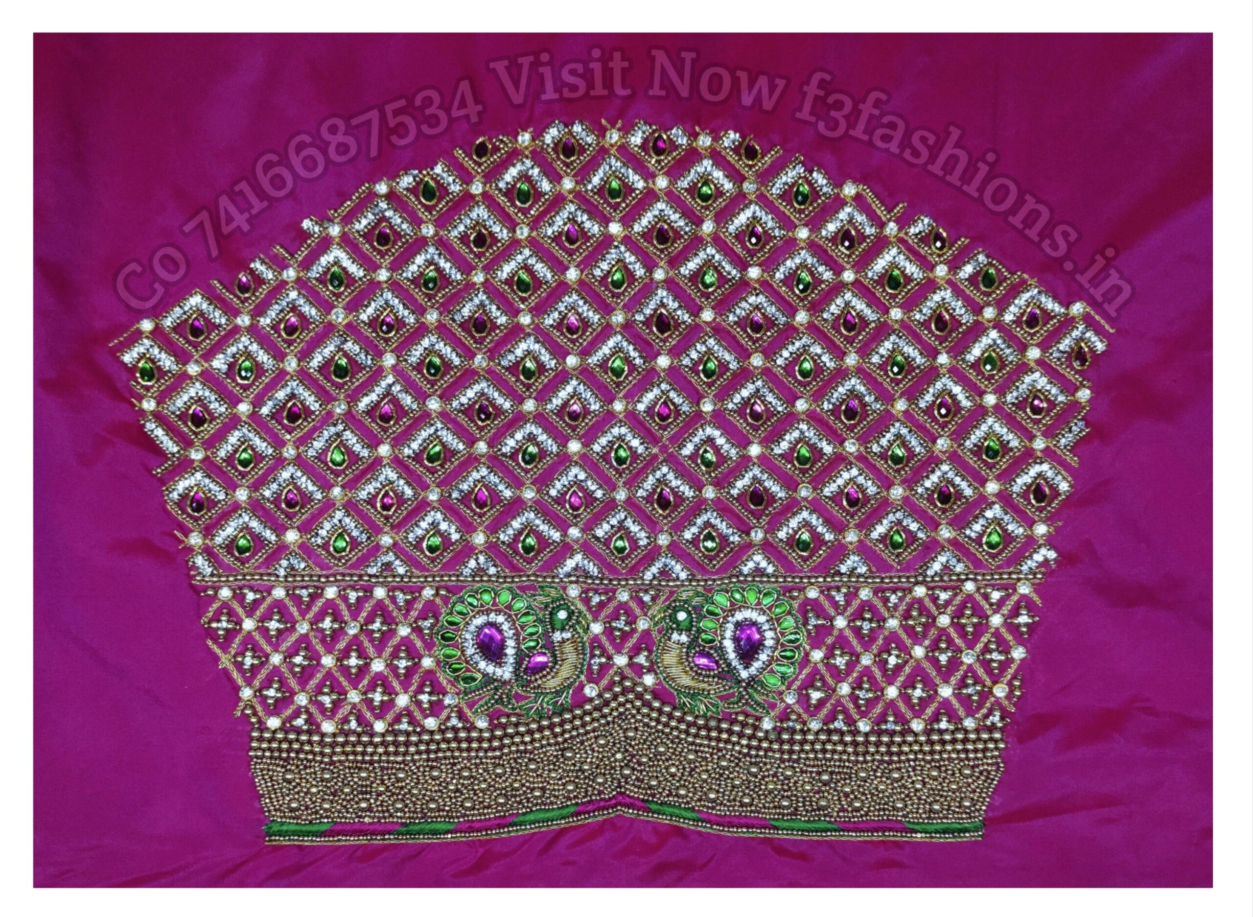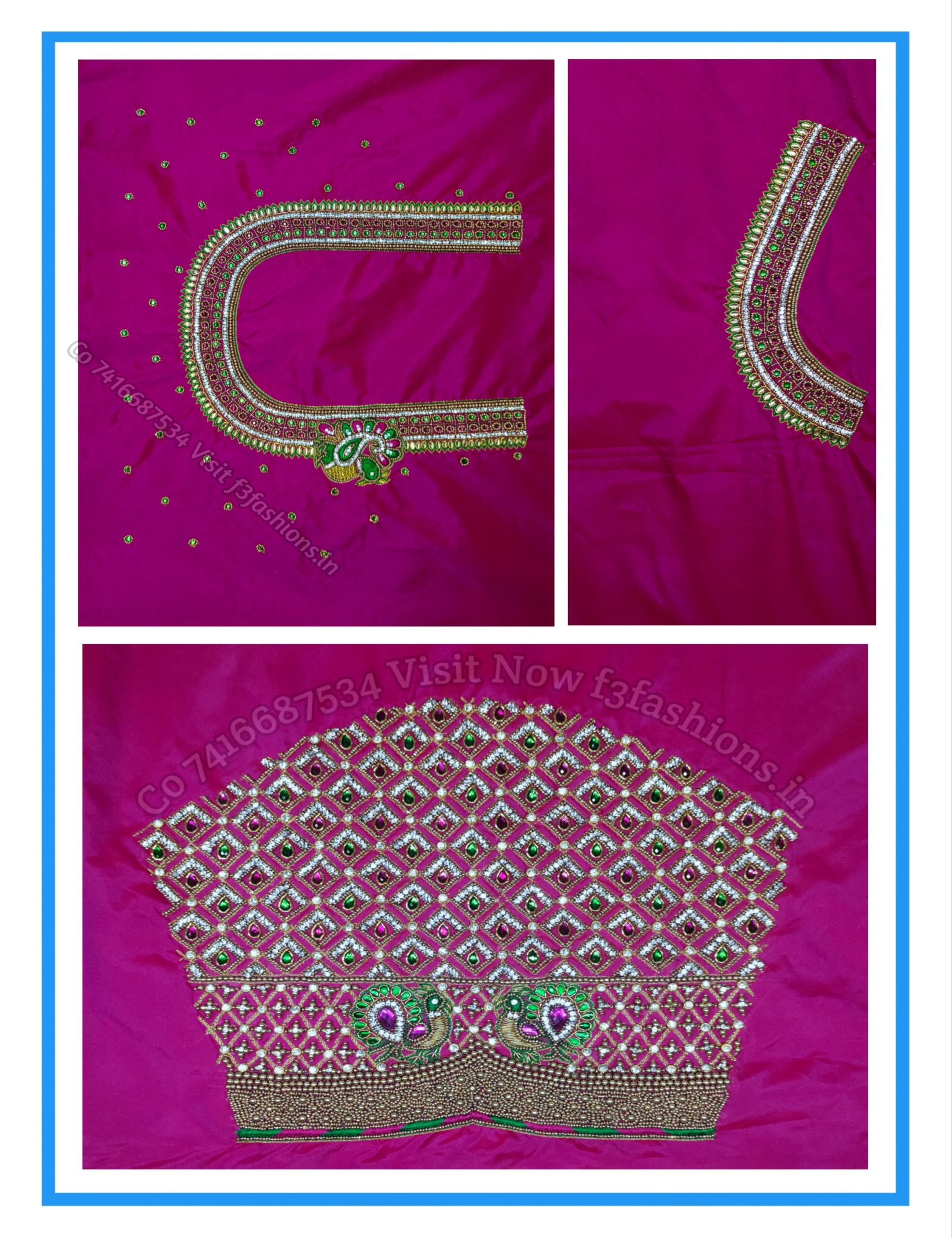 Rani Pink Colour Diamond Design Maggam Work Blouse