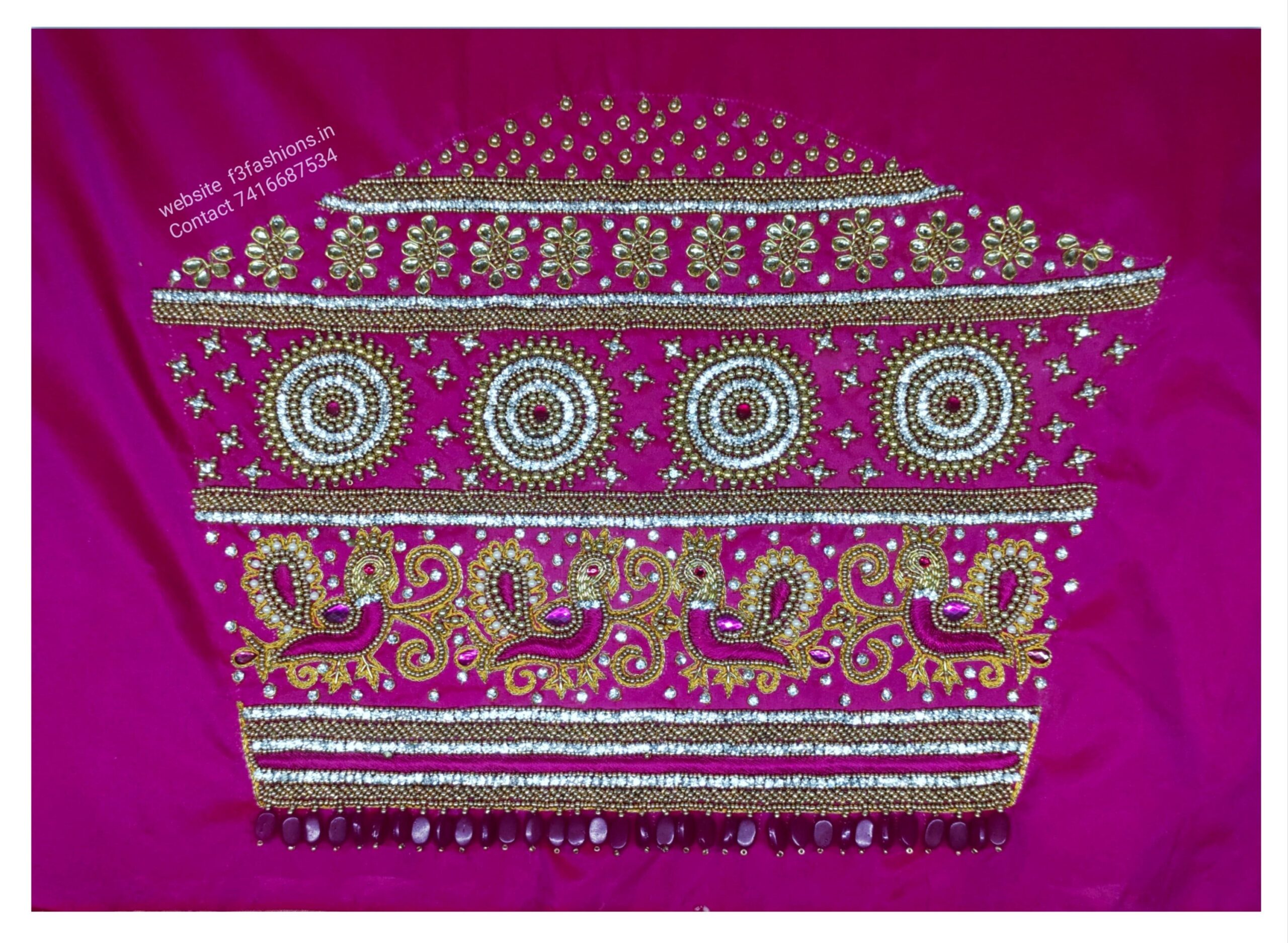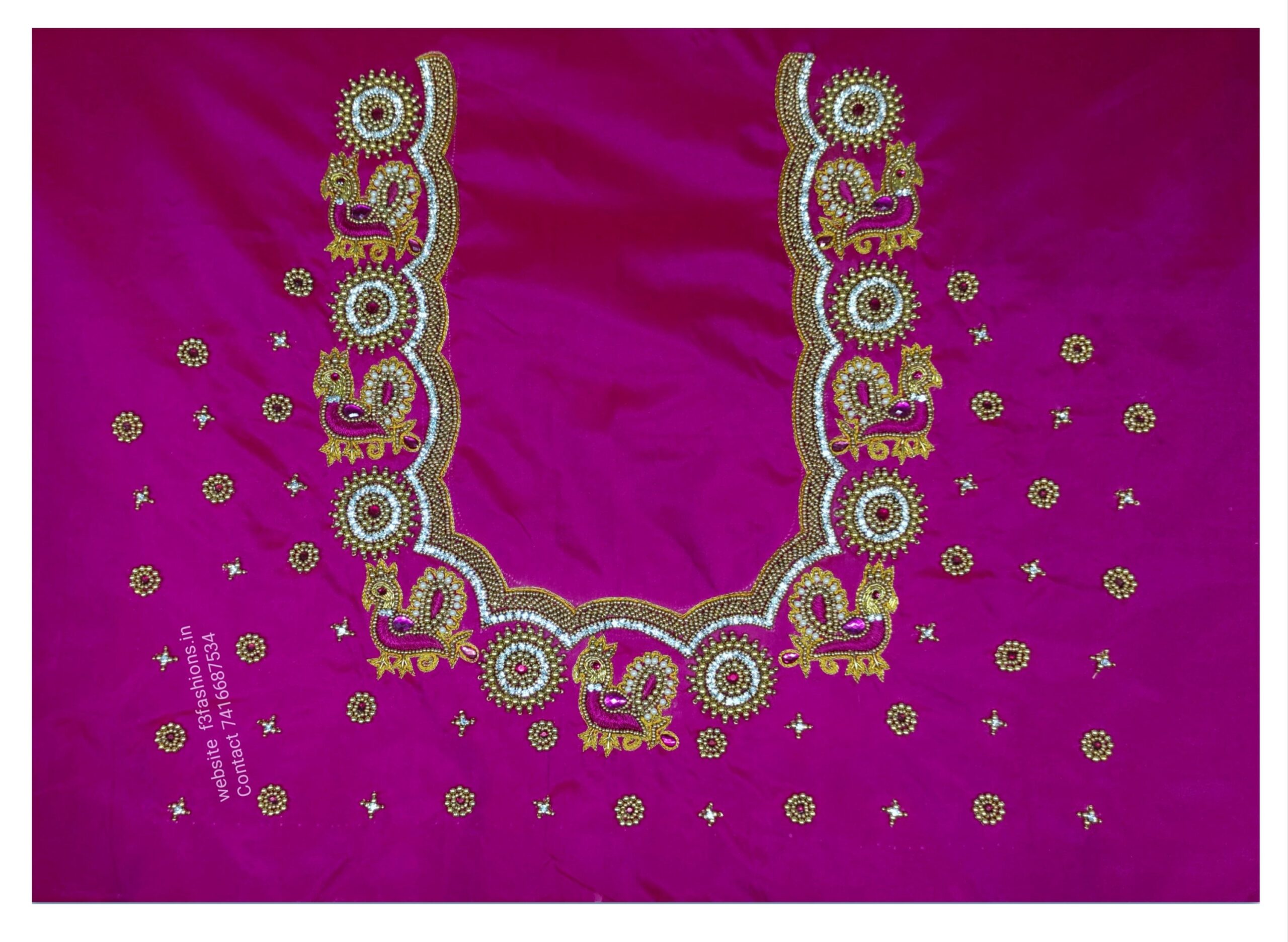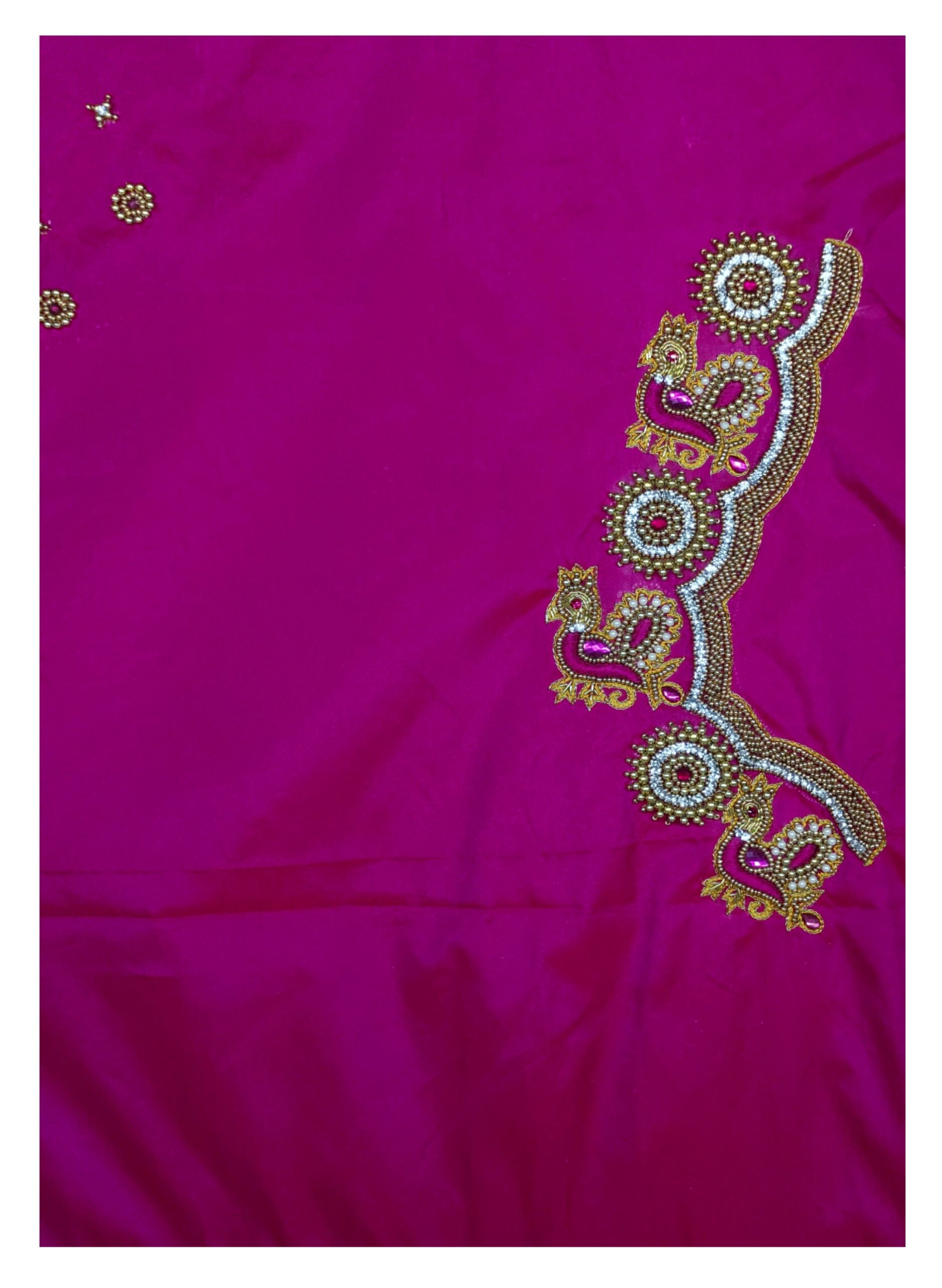 Magenta pink Blouse peacock design elbow hand Maggam work Unstitched Blouse