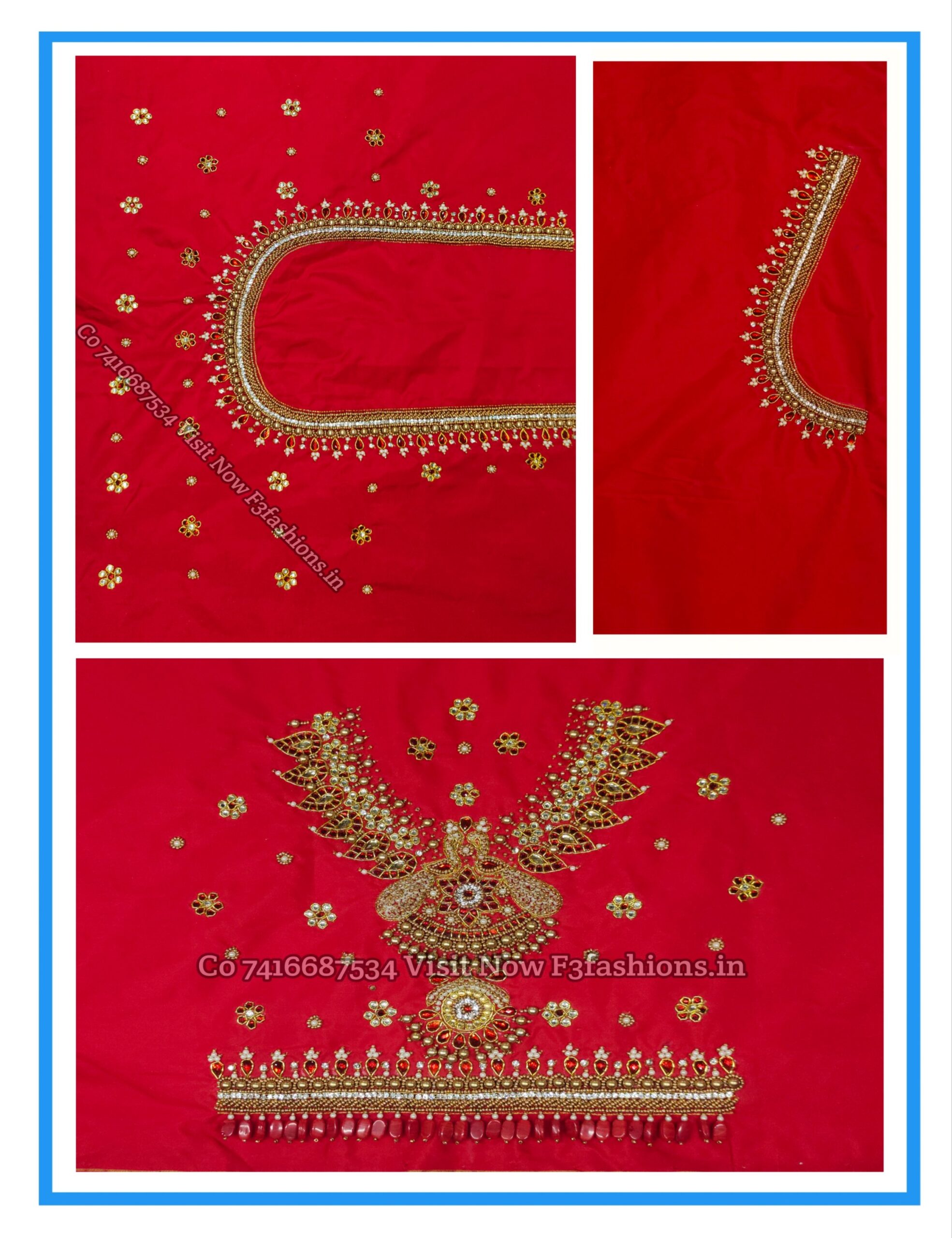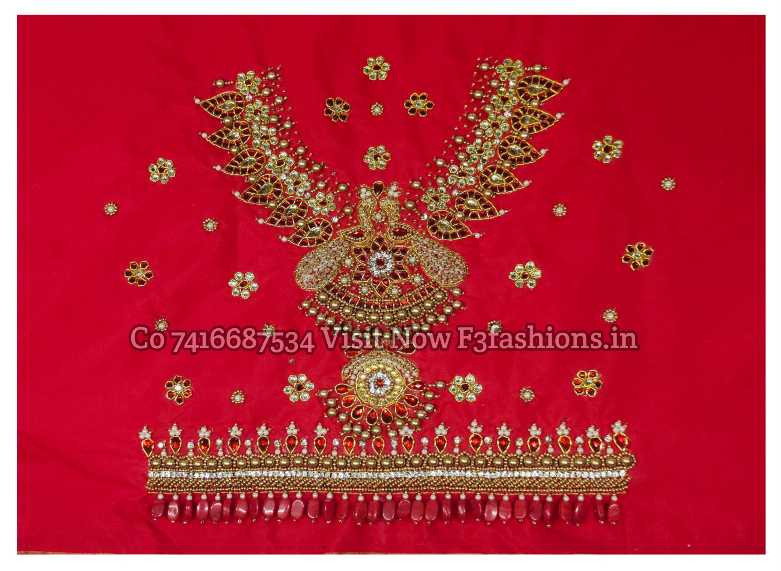 Red Colour Moti Peacock Design maggam work Blouse