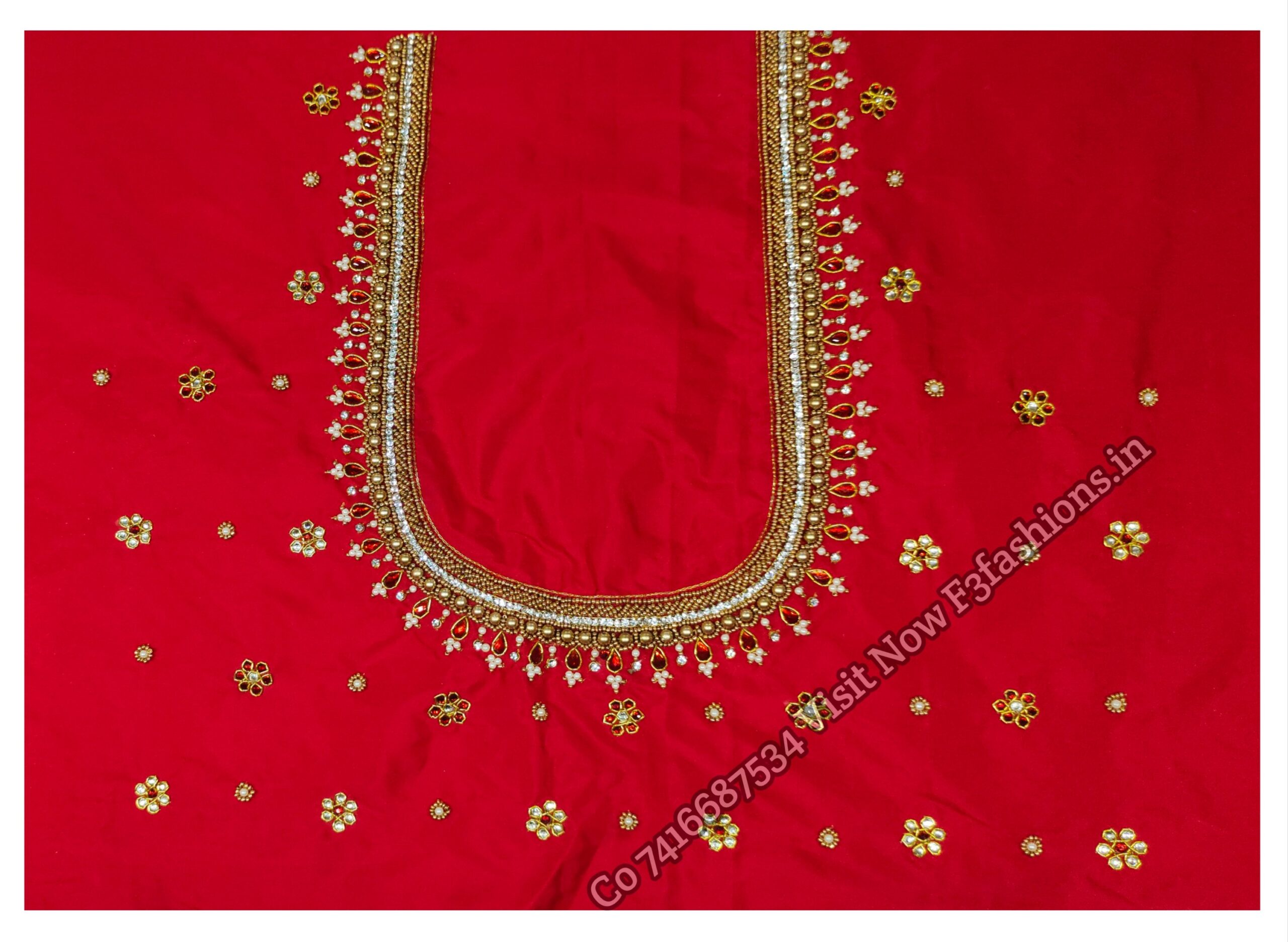 HomeRed Red Colour Moti Peacock Design maggam work Blouse
