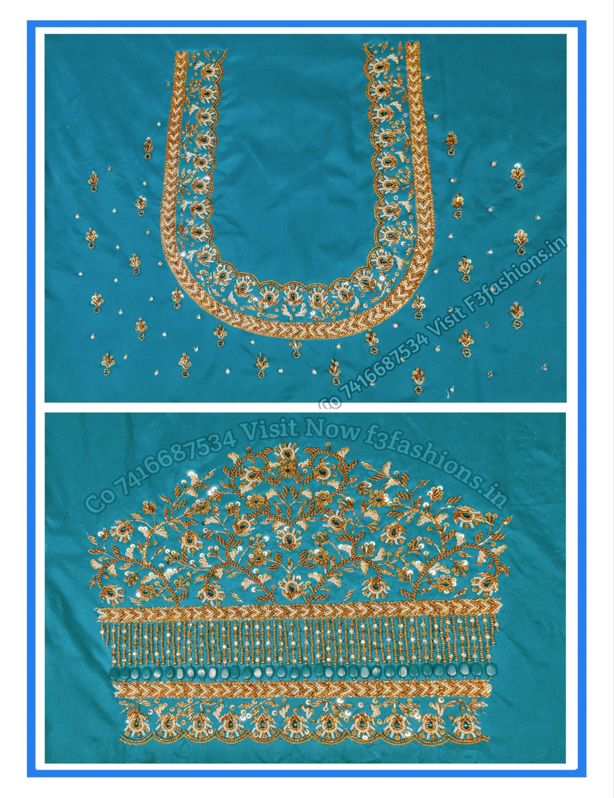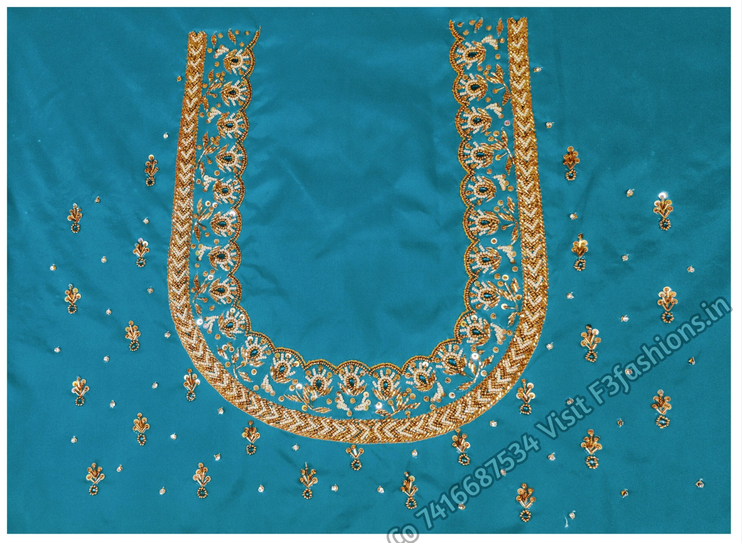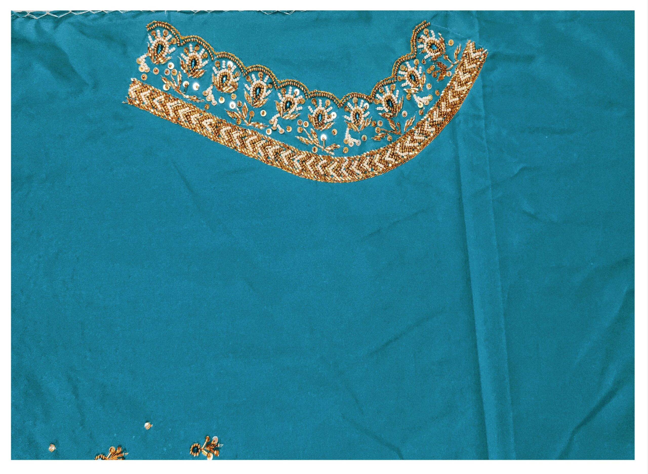 Sea Green Cloth Kardana Design maggam work Blouse