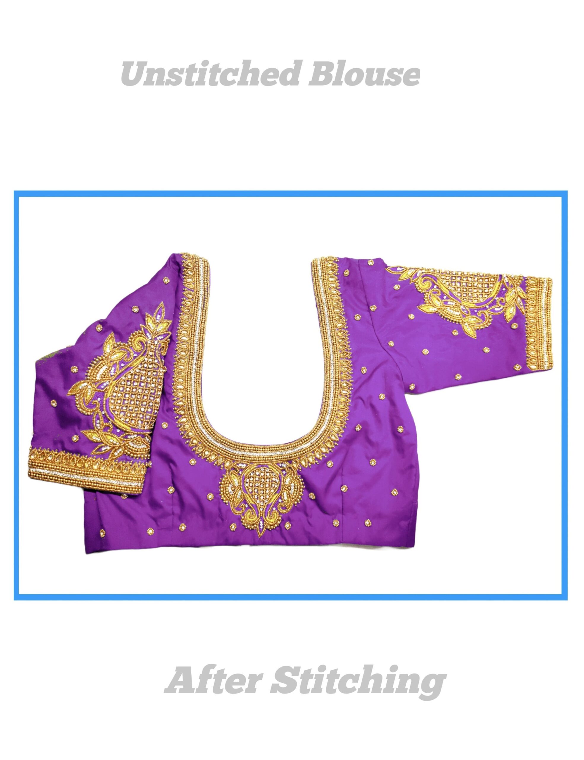 Unstitched Blouse We bring to you this blouse which is designed for women and is made from half pattu, cotton silk fabric. It is available in a set of attractive colors. The design on the blouse is a type of intricate design stitch known as maggam work. It is available in an unstitched form and can be stitched according to your preference and style